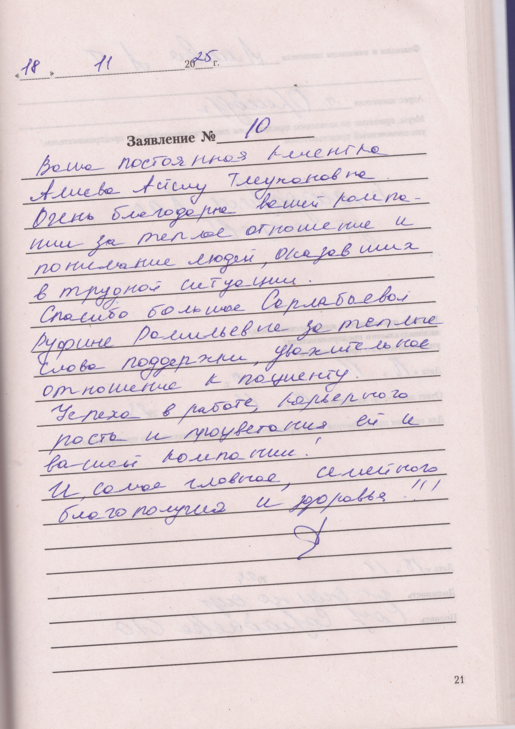 Ваша постоянная клиентка Алиева Айслу Тлеужановна. Очень благодарна вашей компании за теплое отношение и понимание людей, оказавшихся в трудной ситуации.