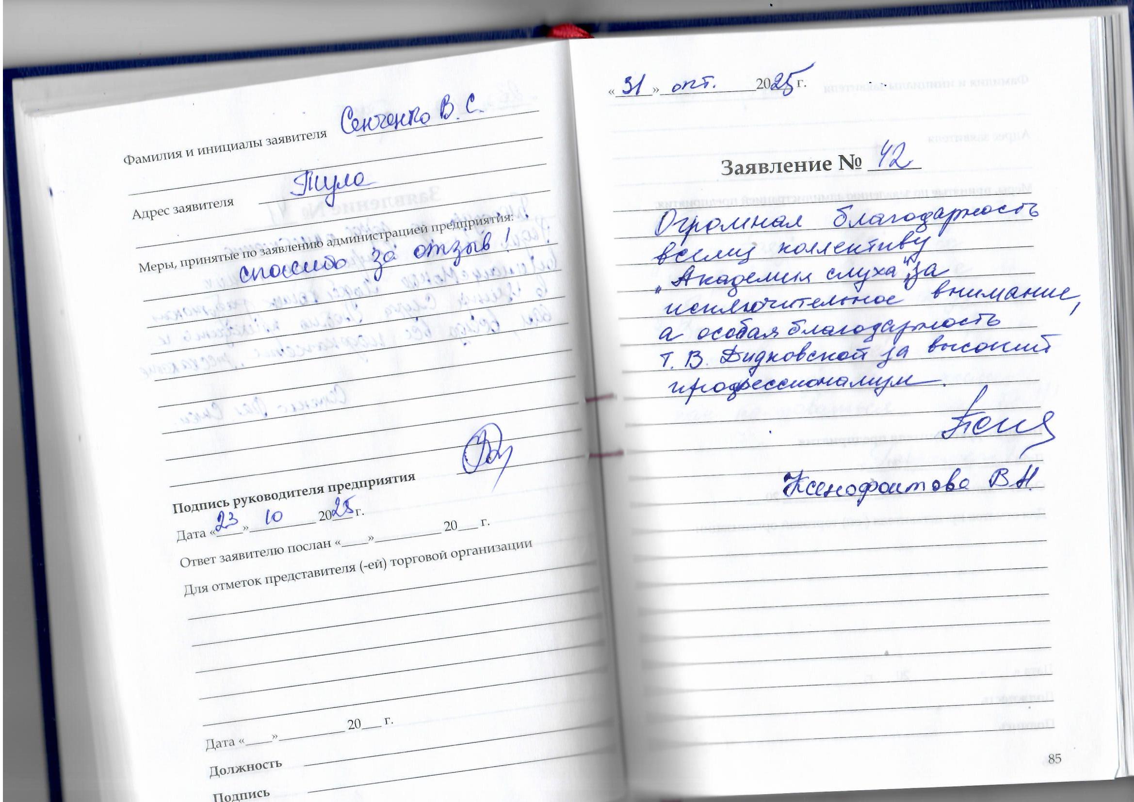 Я, Гончаров В.В выражаю благодарность сотрудникам «Академия Слуха». Всё очень понравилось. Спасибо большое!