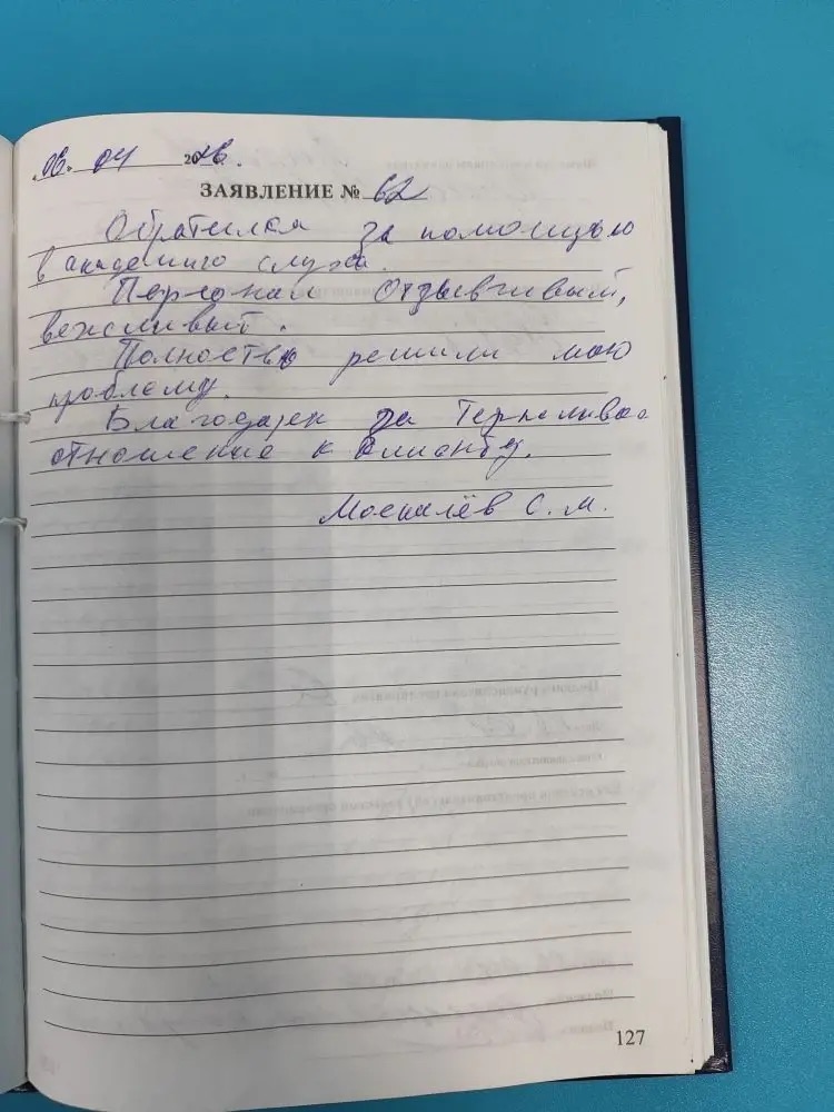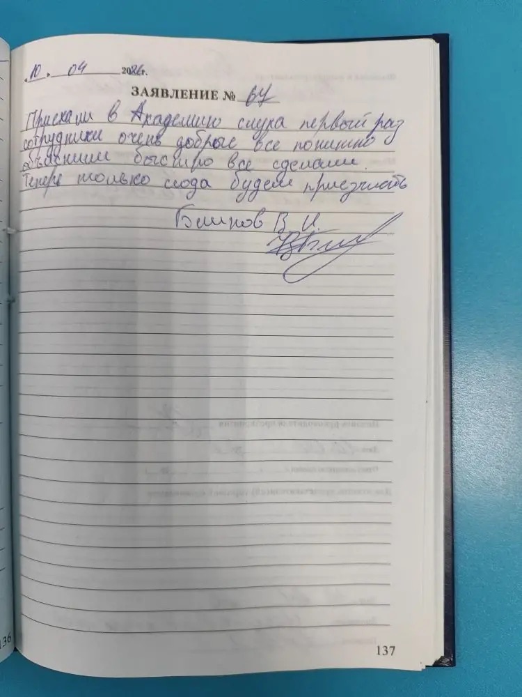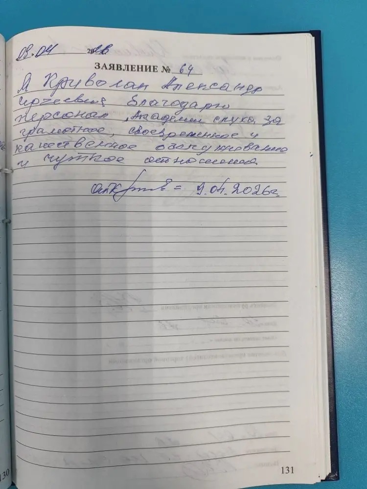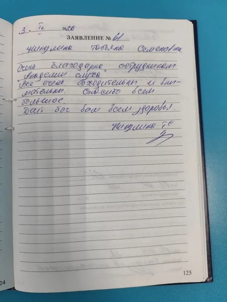 Я, Криволап Александр Сергеевич благодарю персонал "Академии слуха" за грамотное, своевременное и качественное обслуживание и чуткое отношение. подпись 9.04.2026