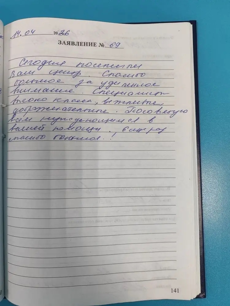 Сегодня посетили ваш центр. Спасибо большое за уделенное внимание. Специалисты высокого класса, вежливые, доброжелательные. Посоветую всем нуждающимся в вашей помощи. Еще раз спасибо большое!