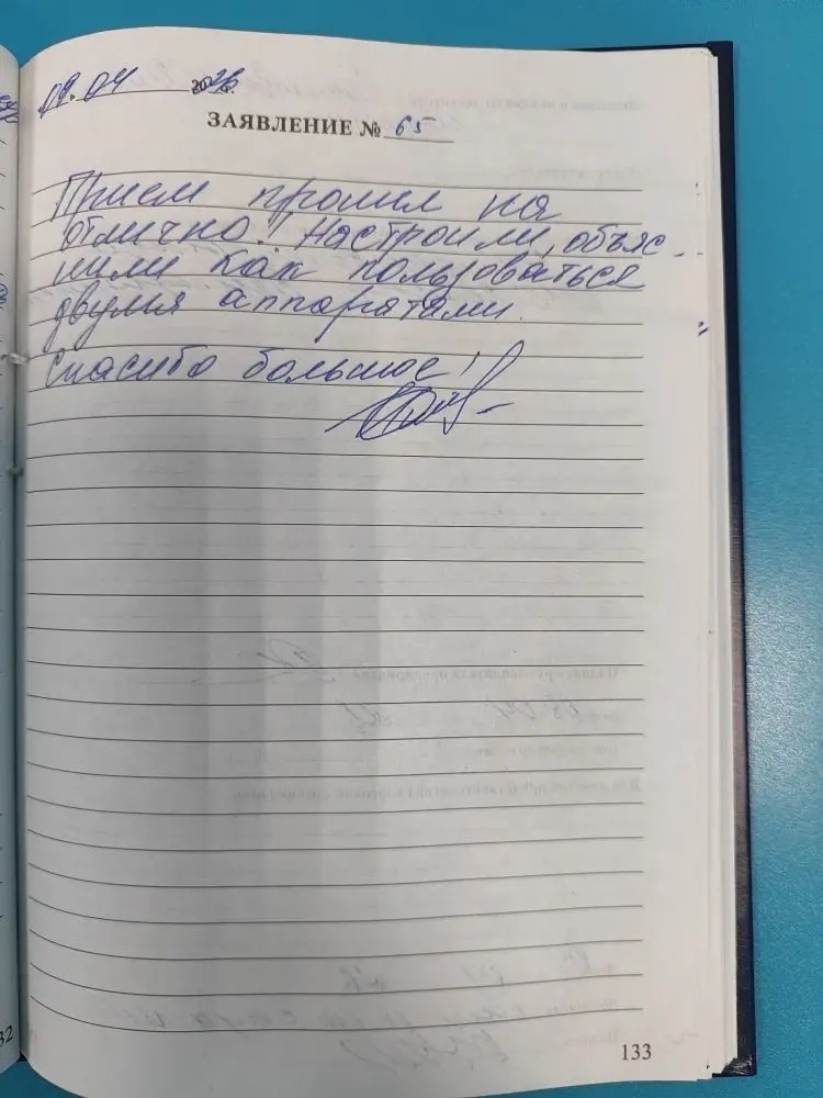 Прием прошел на отлично! Настроили, объяснили как пользоваться двумя аппаратами. Спасибо большое! подпись