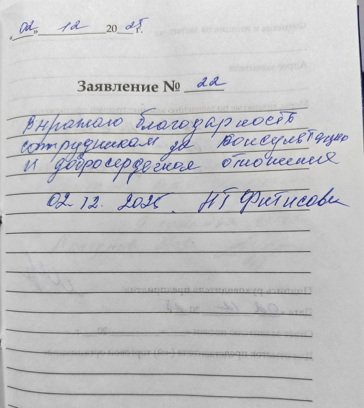 Выражаю благодарность сотрудникам за консультацию и добросердечное отношение. 02.12.2025 НТ Фитисова