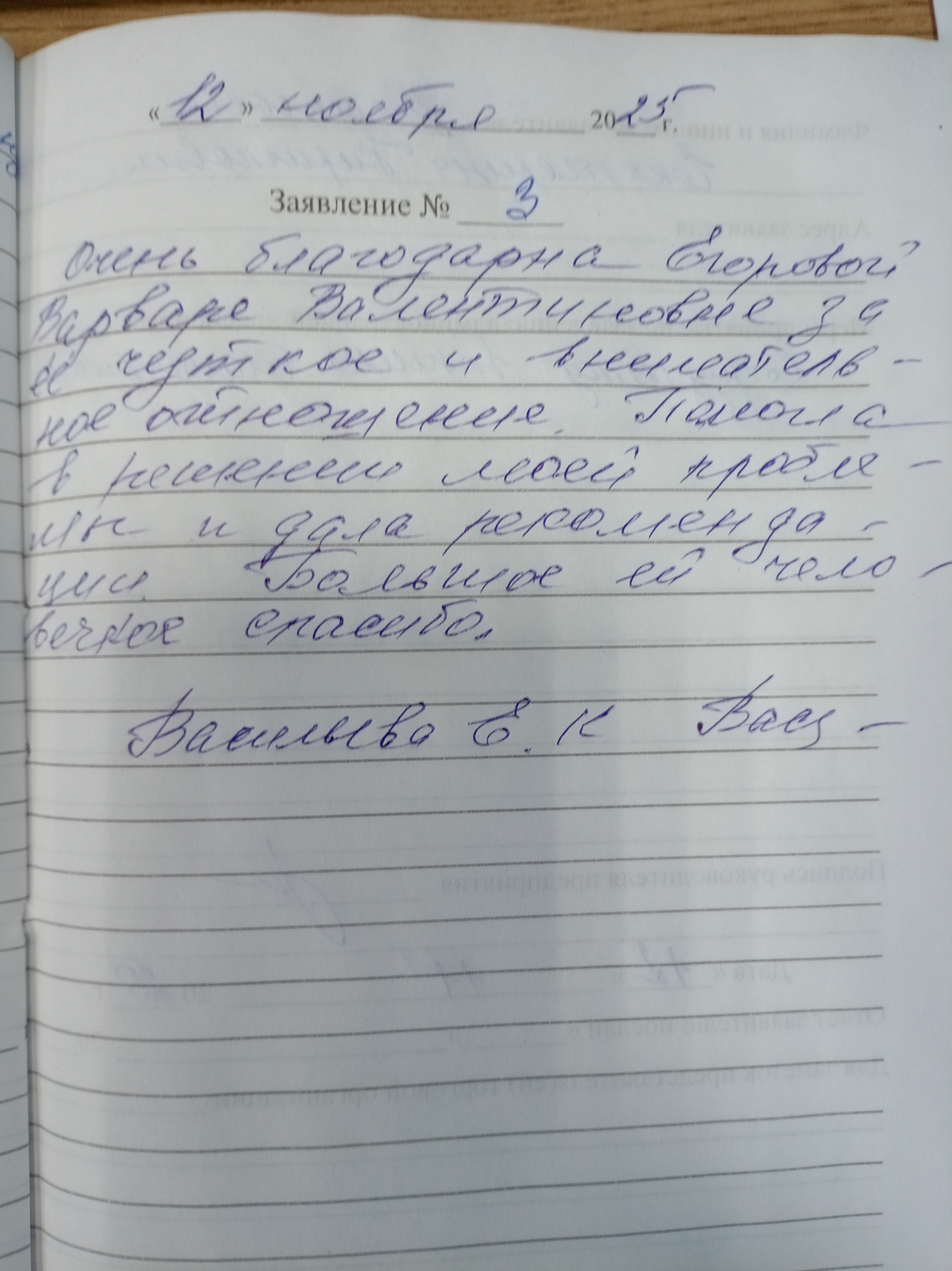 Очень благодарна Егоровой В,В. за чуткое и внимательное отношение.Помогла в решении моей проблемы и дала рекомендации. Большое ей человеческое спасибо.