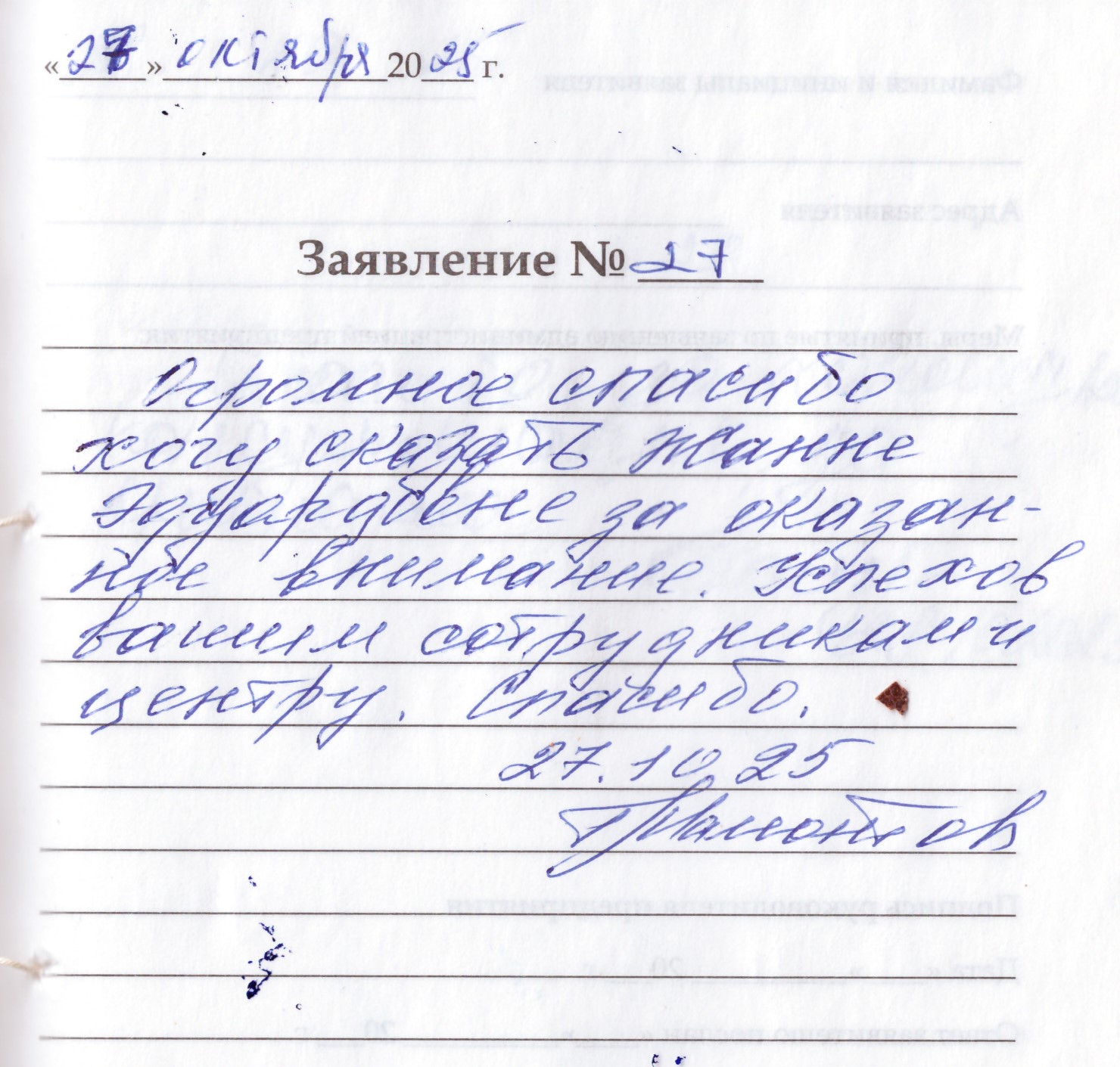 Огромное спасибо хочу сказать Жанне Эдуардовне за оказанное внимание. Успехов вашим сотрудникам и центру. Спасибо.