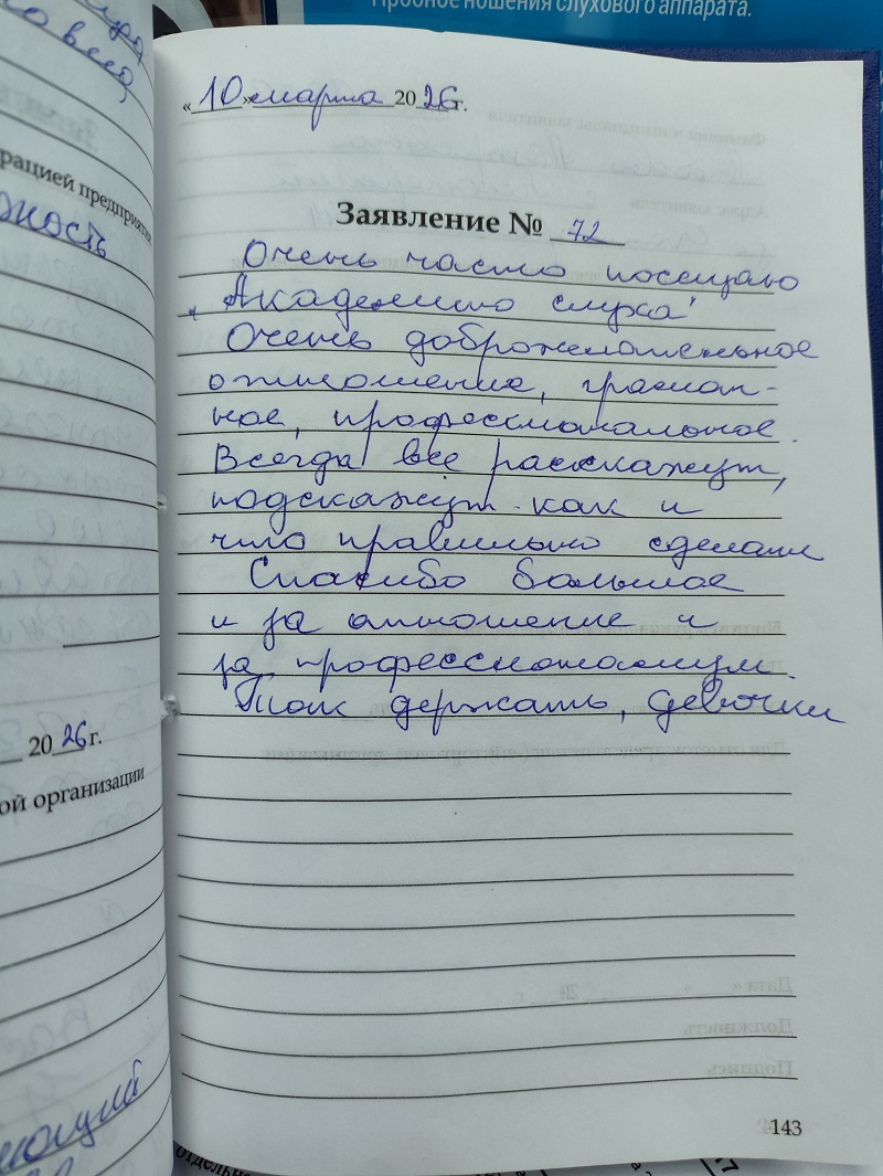 Очень часто посещаю Академию слуха. Очень доброжелательное отношение. Всегда все расскажут, подскажут, как и что правильно сделать. Спасибо большое за отношение и за профессионализм. Так держать, девочки!