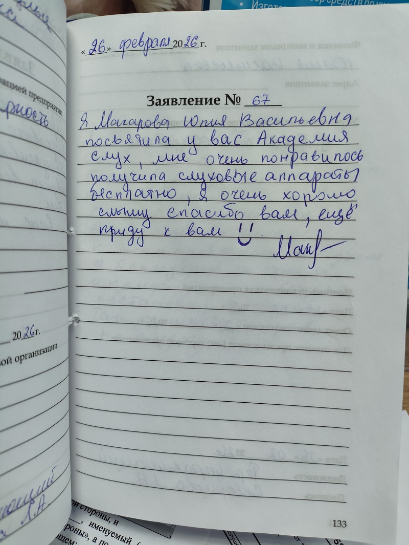 Я Макарова Юлия Васильевна посетила Академию слуха, мне очень понравилось. Получила слуховые аппараты бесплатно, я очень хорошо слышу. Спасибо вам, ещё приду к вам!!!