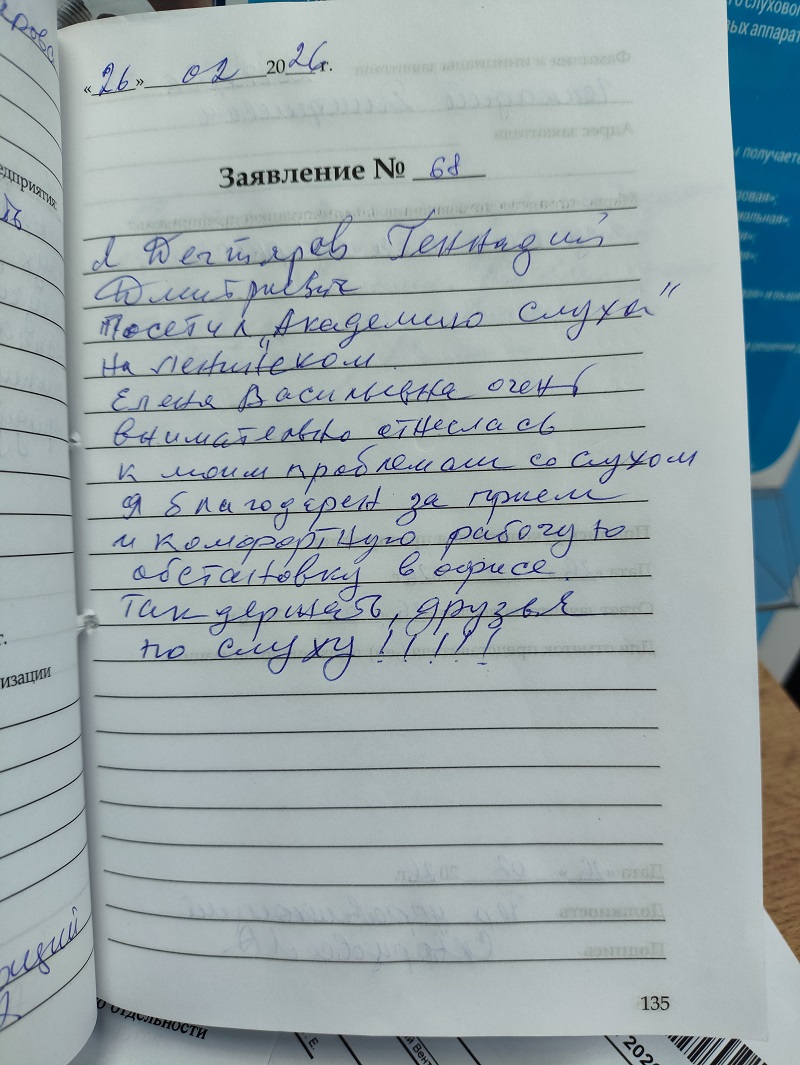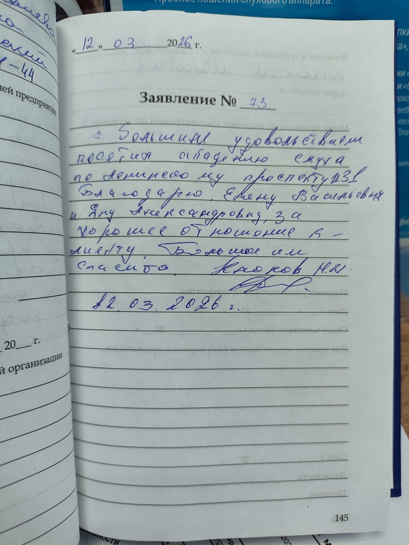 Я дегтярев Геннадий Дмитриевич посетил Академию слуха на Ленинском . Елена Васильевна очень внимательно отнеслась к моим проблемам со слухом. Я благодарен за прием и комфортную рабочую обстановку в офисе. Так держать друзья по слуху!!!