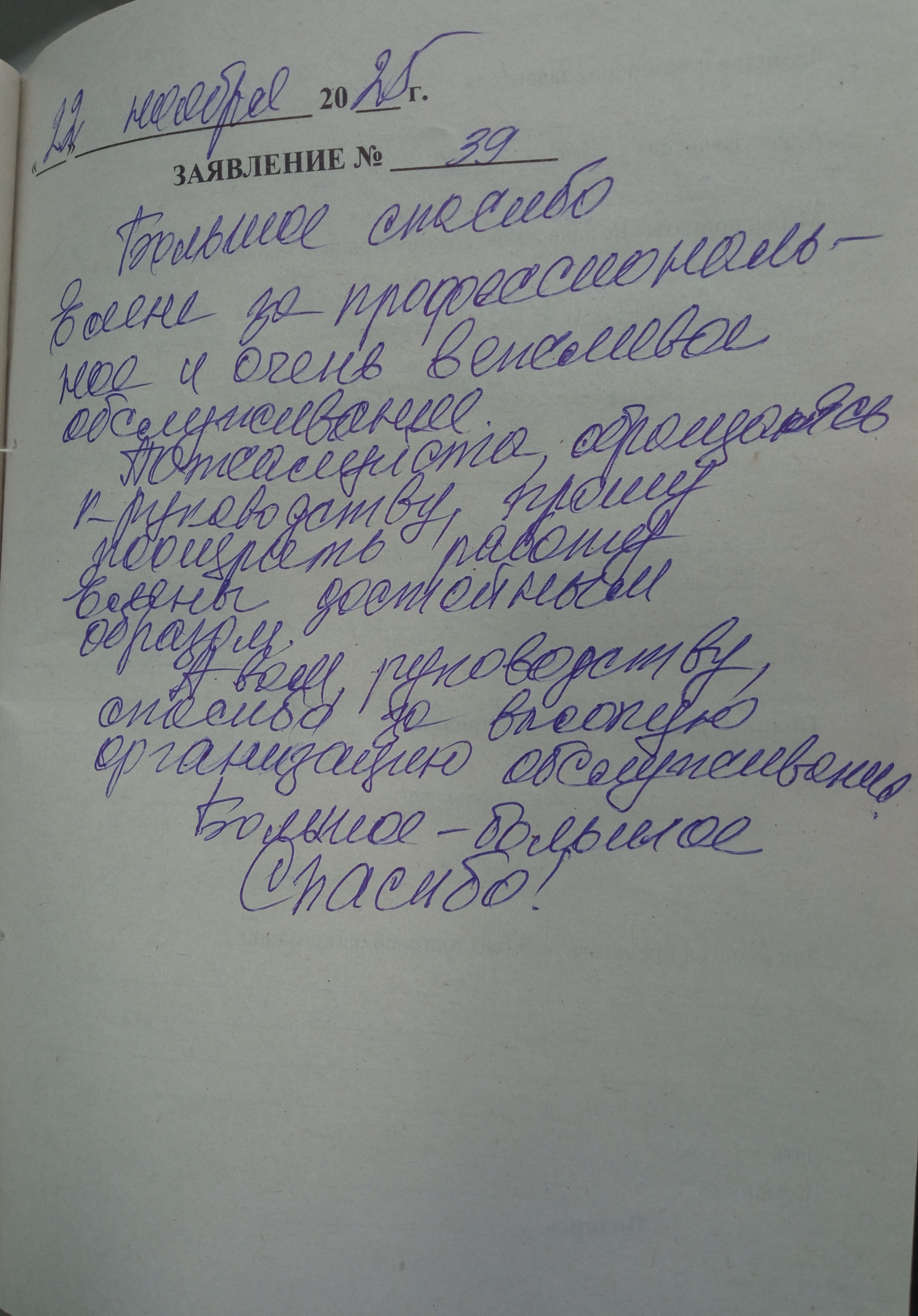 А вам, руководству, спасибо за высокую организацию обслуживания. Большое-большое спасибо!