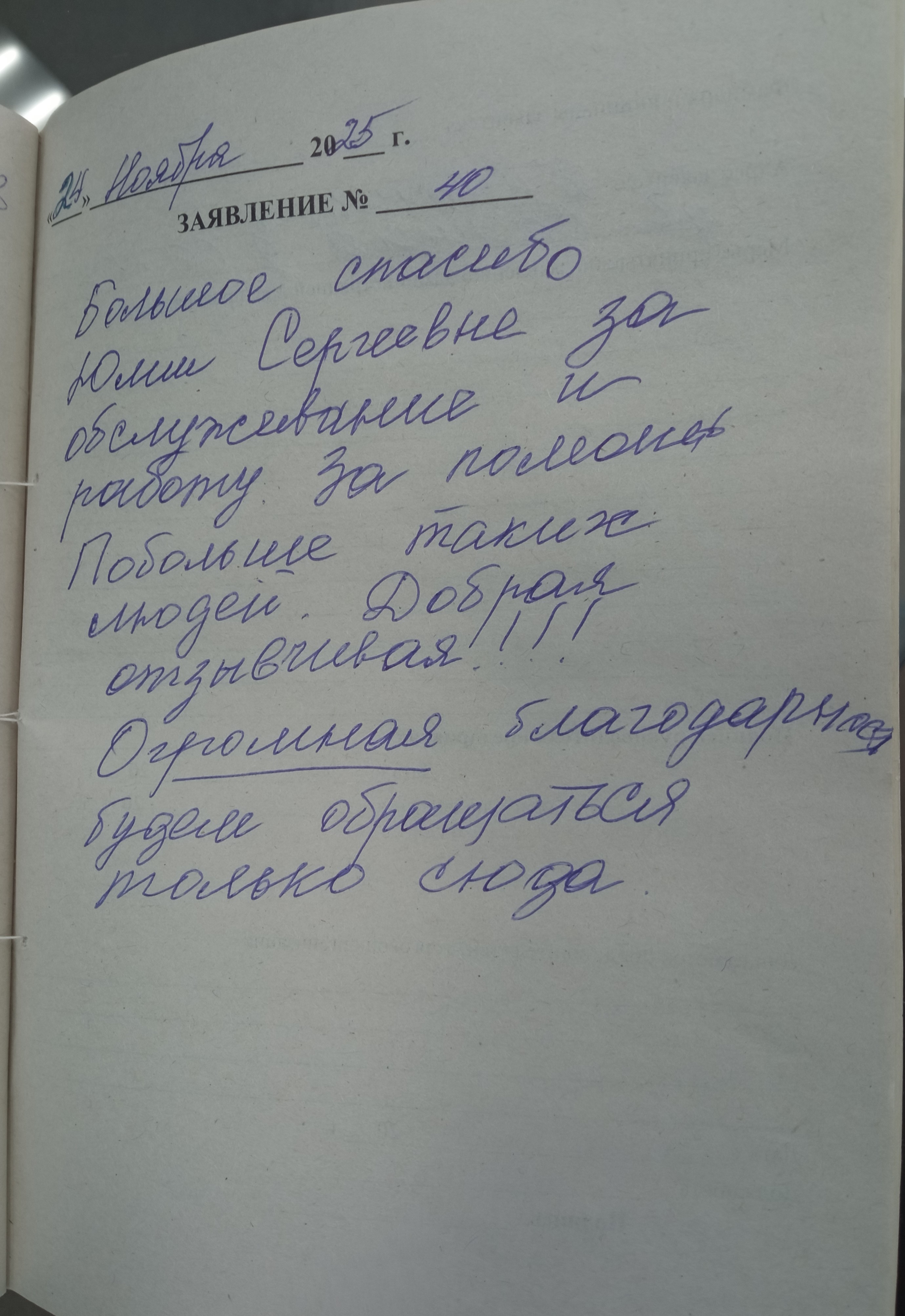 Большое спасибо Юлии Сергеевне за обслуживание и работу. За помощь. Побольше таких людей. Добрая, отзывчивая!!!