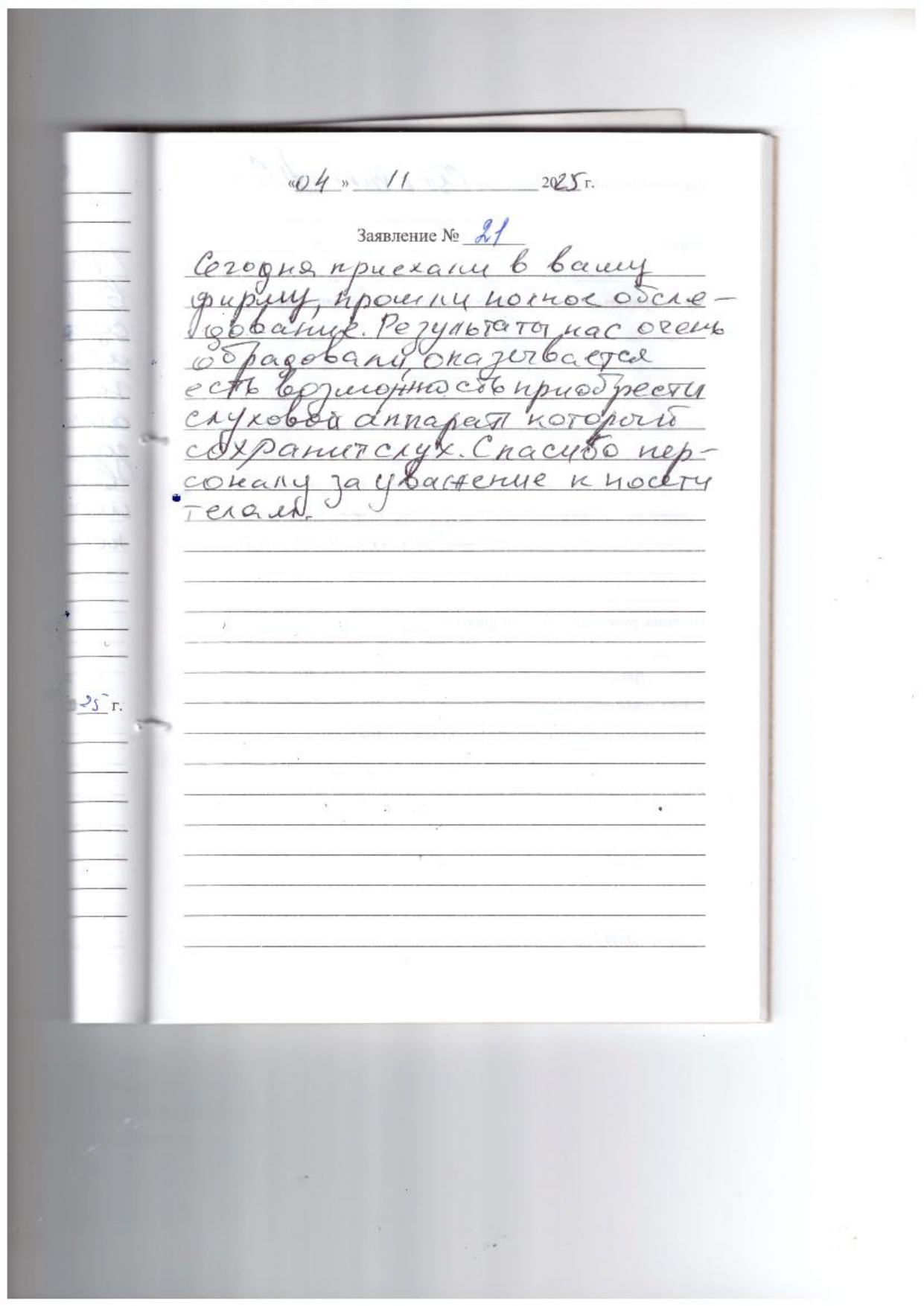 Сегодня приехали в вашу фирму, прошли полное обследование. Результаты нас очень обрадовали, оказывается есть возможность приобрести слуховой аппарат который сохранит слух, спасибо персоналу за уважение к посетителям.