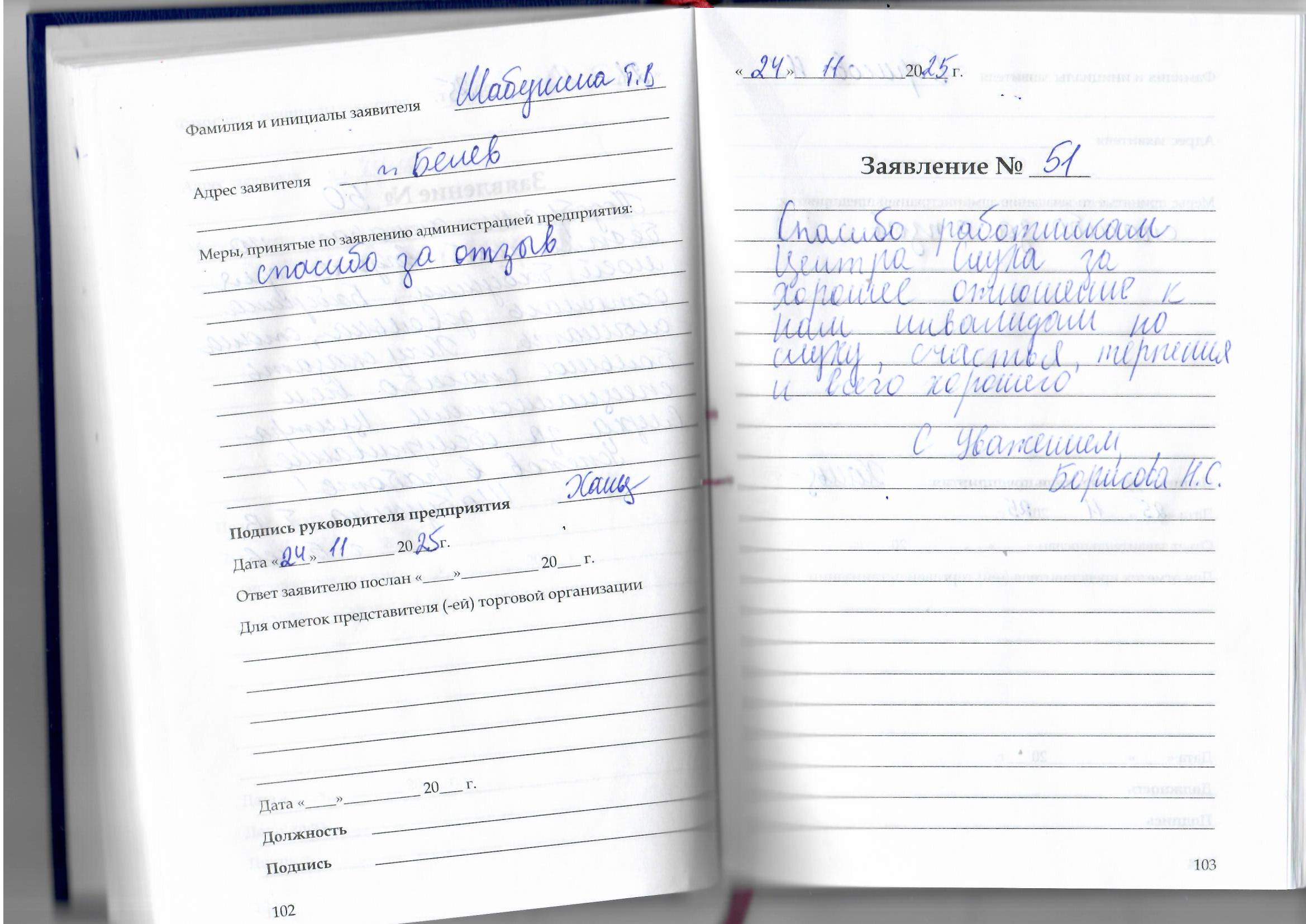 Спасибо работникам Центра Слуха за хорошее отношение к нам инвалидам по слуху, счастья, терпения и всего хорошего С Уважением, Борисова Н.С.