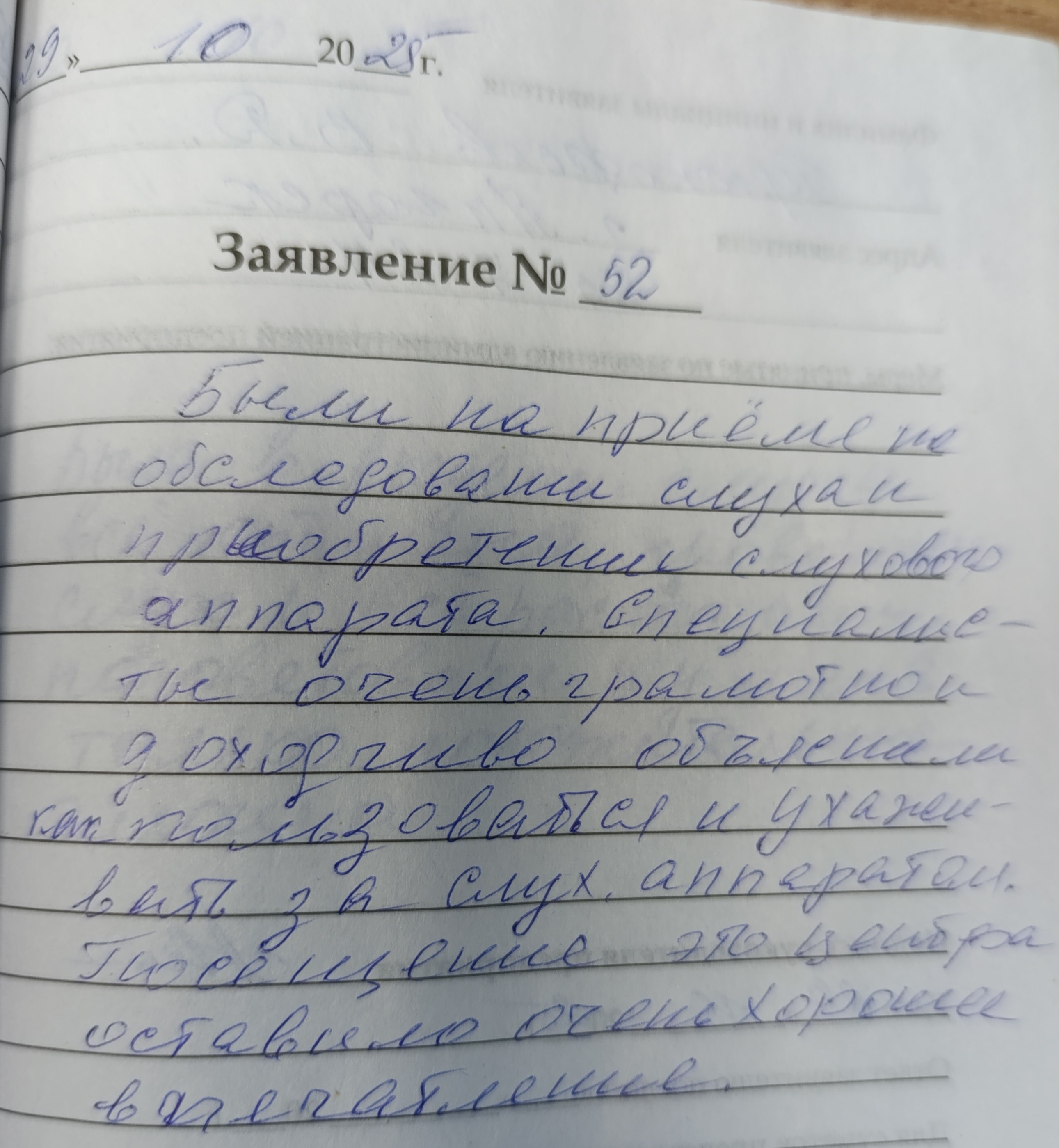 Были на приёме на обследовании слуха и и приобретение слухового аппарата. Специалисты очень грамотно и доходчиво объяснили как пользоваться и ухаживать за слух. аппаратом. Посещение этого центра оставило очень хорошее впечатление.