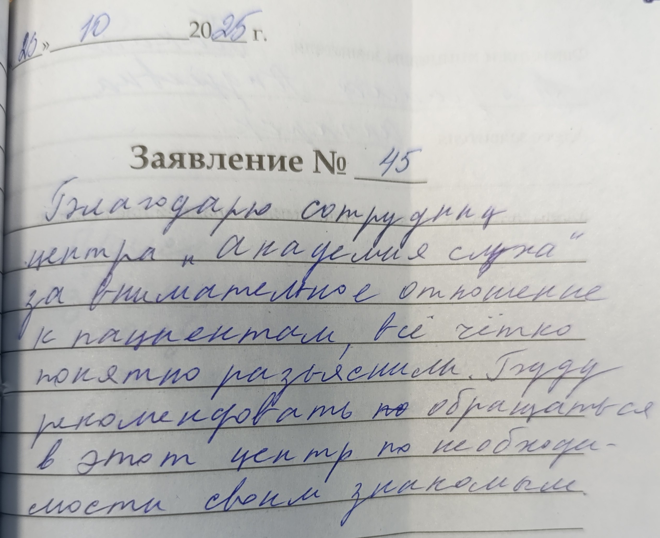 Спасибо большое сотрудникам центра, очень понравилось, общее впечатление на отлично, еще раз спасибо!