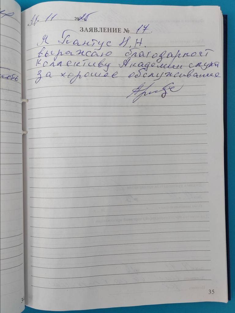 Я Пантус Н.Н. выражаю благодарность коллективу Академии слуха за хорошее обслуживание. Подпись