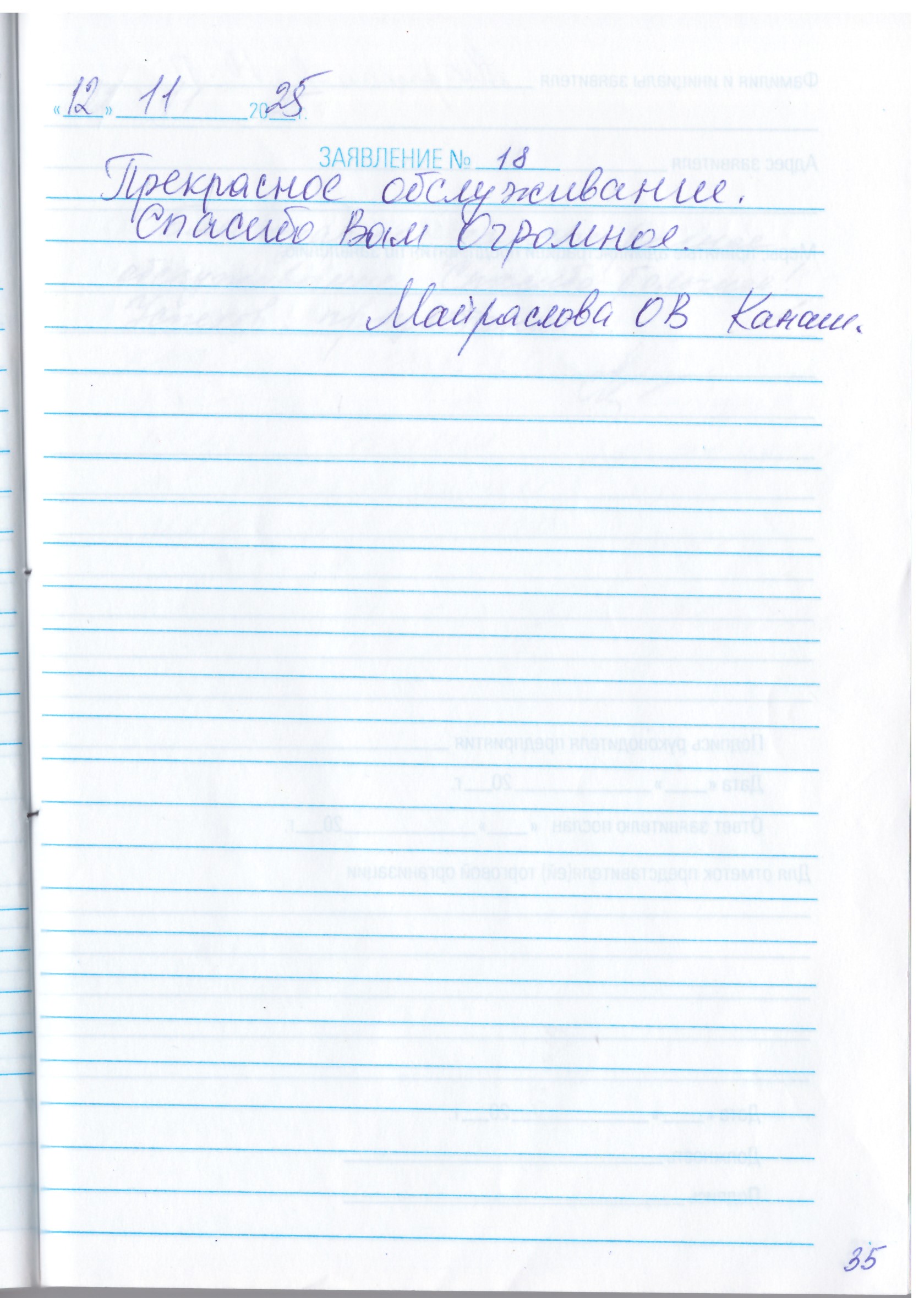 Благодарим за прекрасное обслуживание. Спасибо большое! Успехов, процветания!