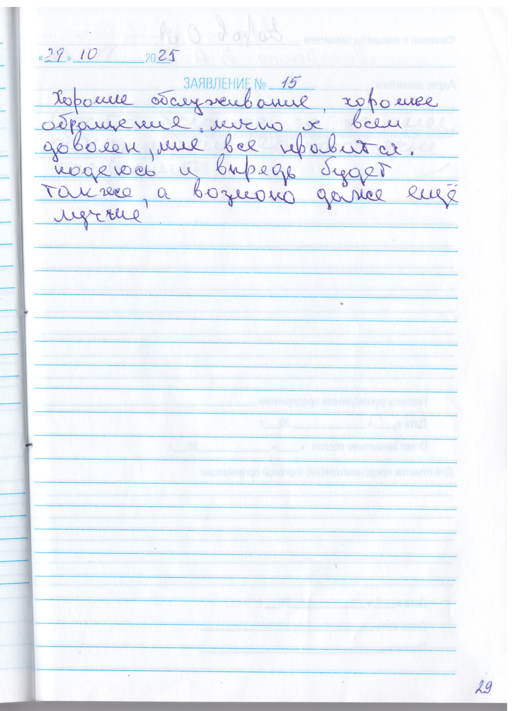 Хорошее обслуживание, хорошее обращение. Лично я всем доволен, мне все нравится. Надеюсь и впредь будет также, а возможно даже ещё лучше.