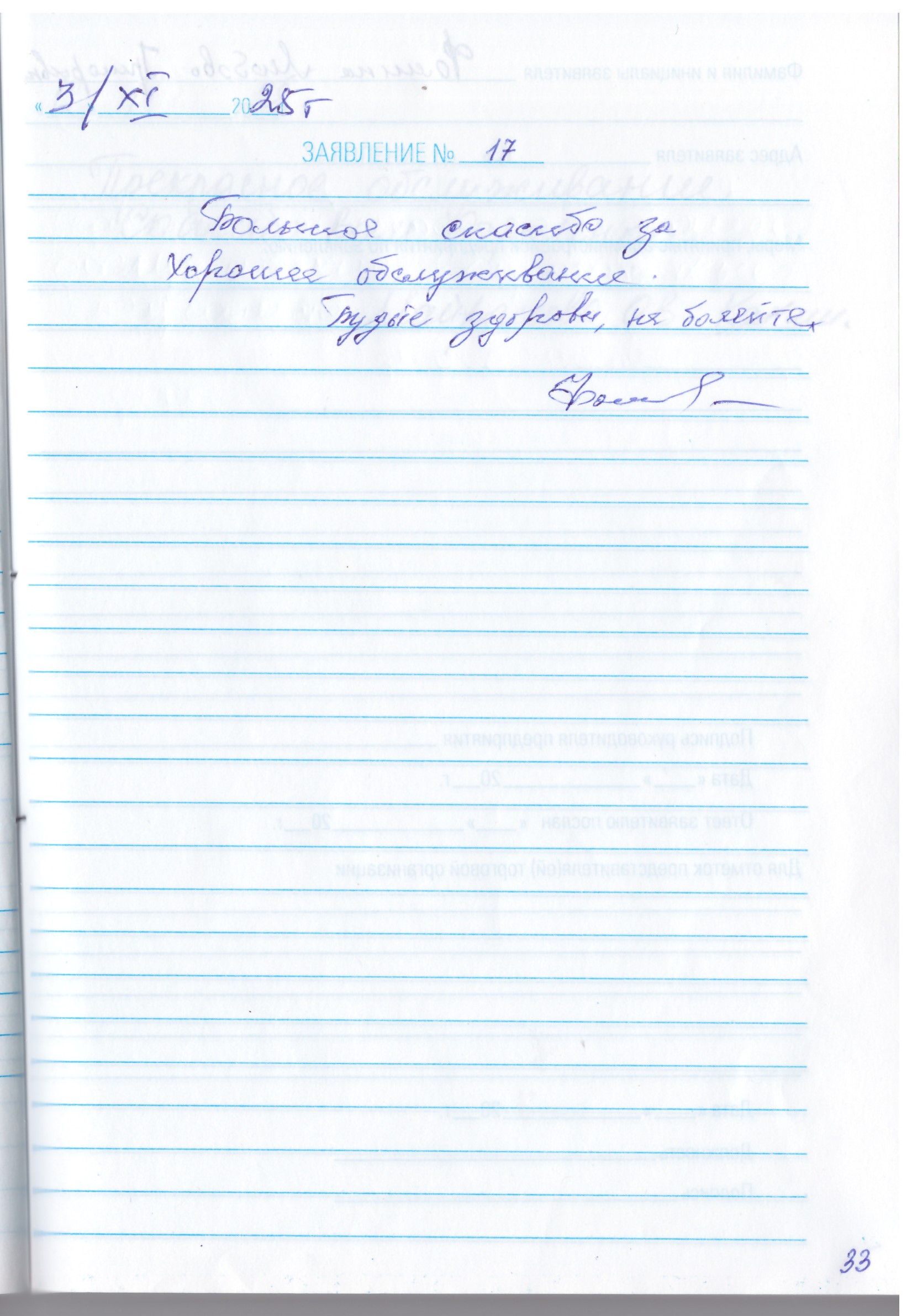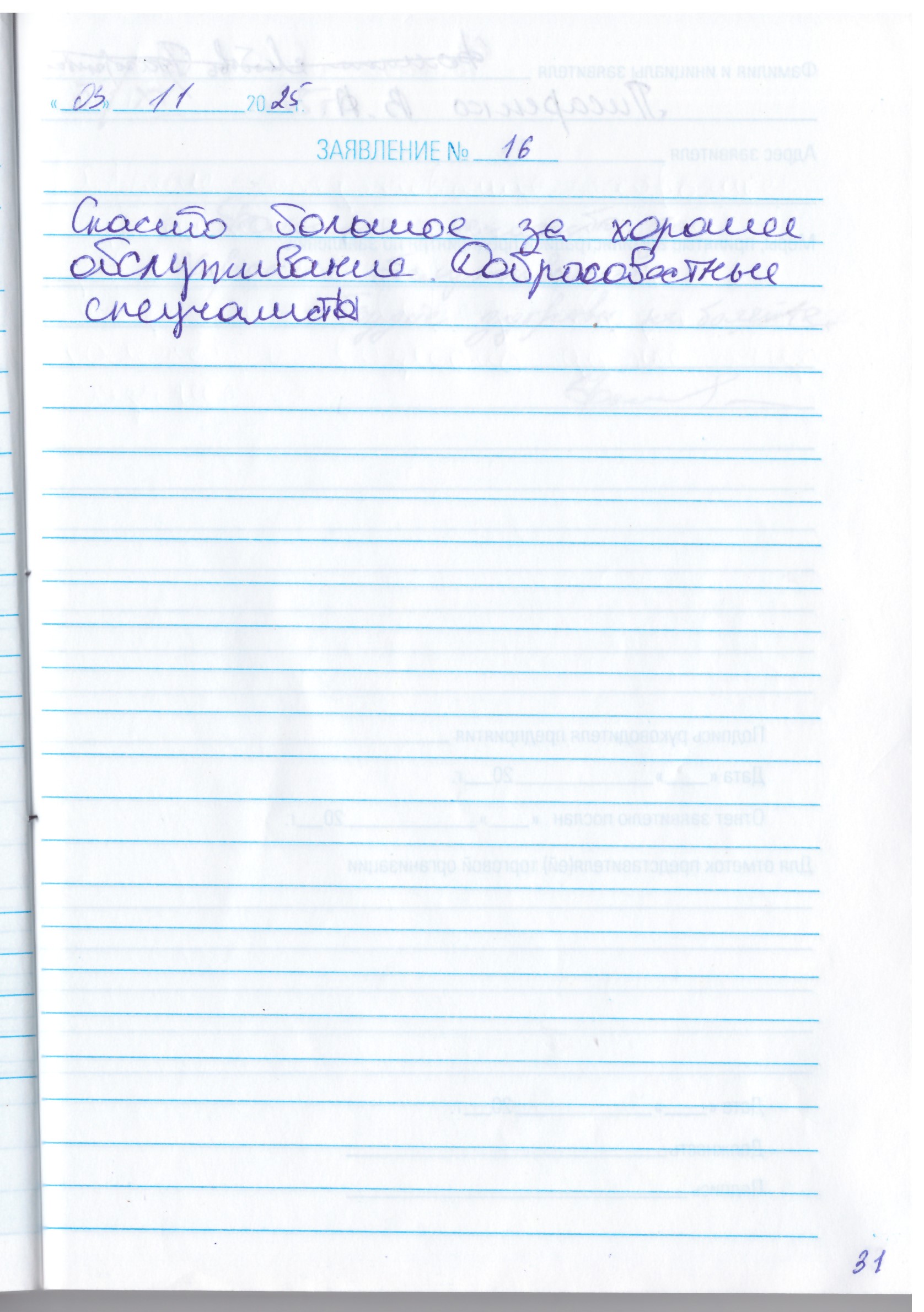 Спасибо большое за хорошее обслуживание. Добросовестные специалисты.