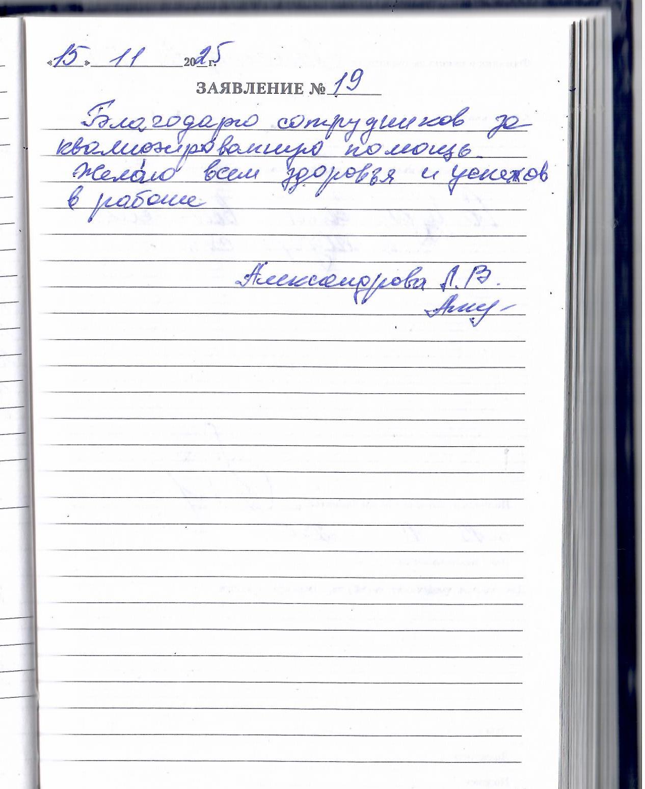 Благодарю сотрудников за квалифицированную помощь. Желаю всем здоровья и успехов в работе.
