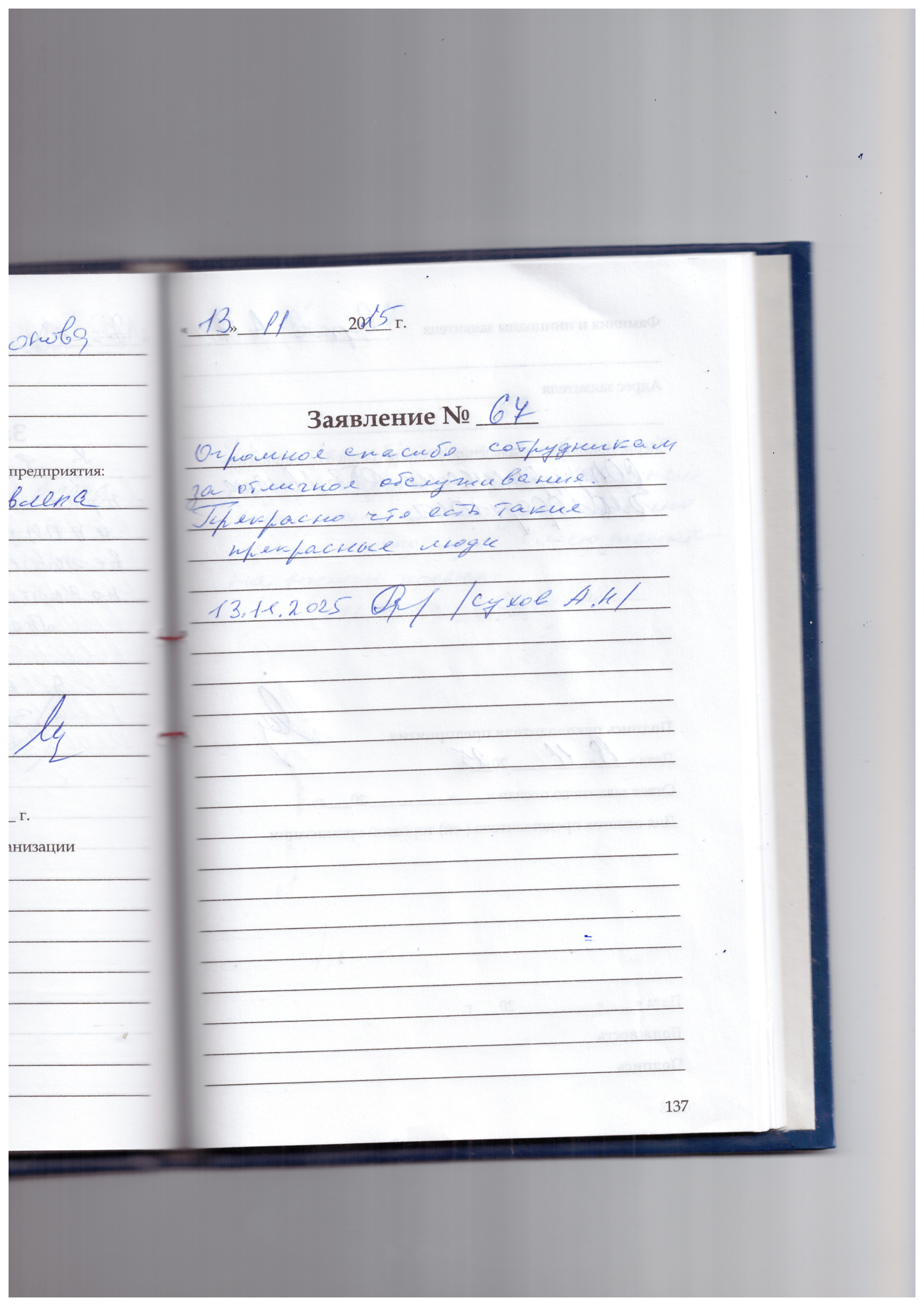 Огромное спасибо сотрудникам за отличное обслуживание. Прекрасно что есть такие прекрасные люди.