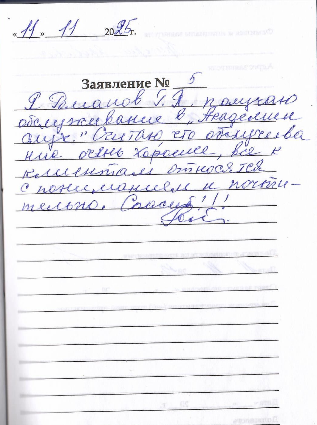 Благодарю сотрудников Академии Слуха за внимание, за доброкачественное выполнение заказа.