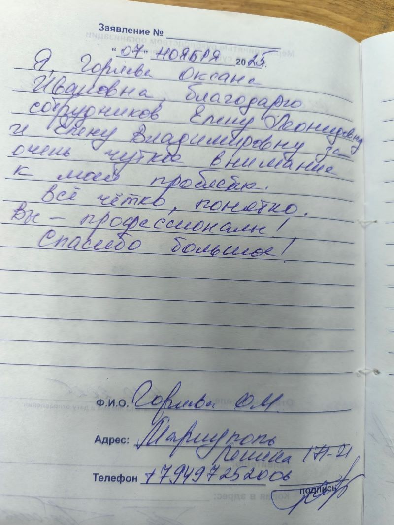 5. Я, Горяева Оксана Ивановна, благодарю сотрудников Елену Леонидовну и Елену Владимировну за очень чуткое внимание к моей проблеме. Всё чётко, понятно. Вы- профессионалы! Спасибо большое!