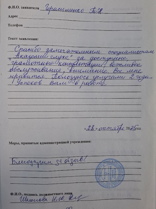 Спасибо большое "Академии Слуха" за внимание, заботу и хорошую качественную работу.