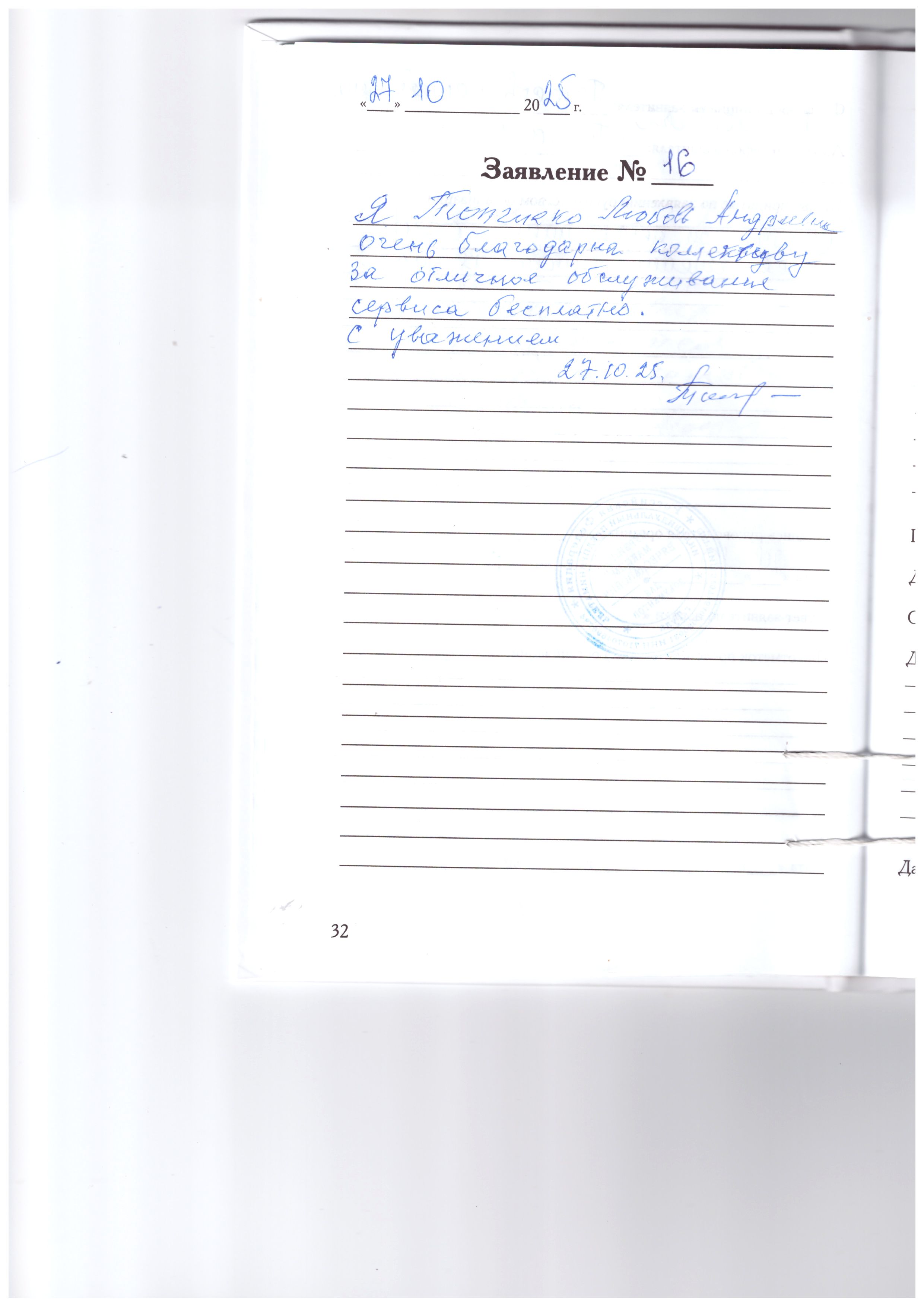 Я Топчиенко Любовь Андреевна очень благодарна коллективу за отличное обслуживание сервиса бесплатно. С уважением