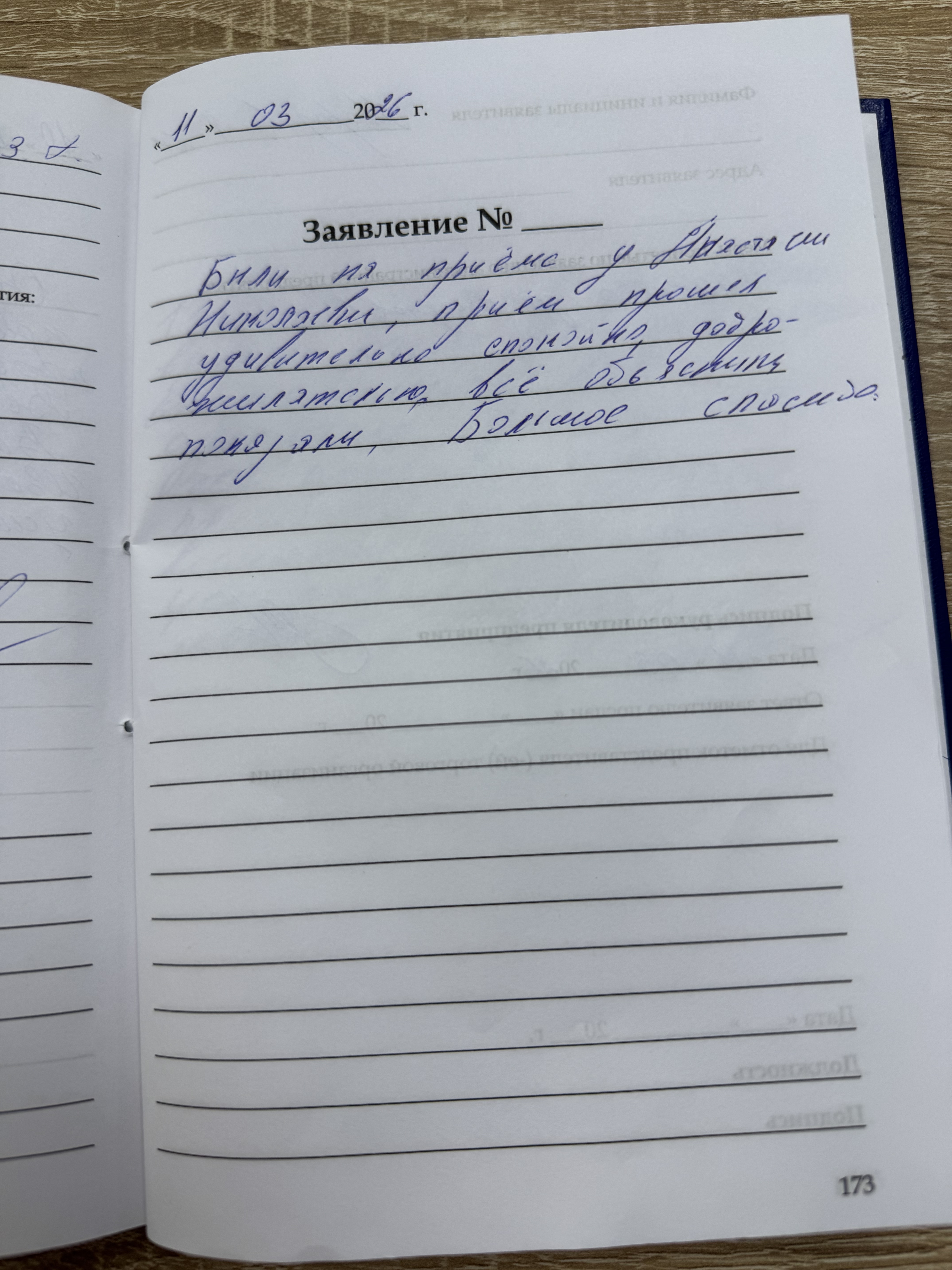 Были на приеме у Анастасии николаевны, прием прошел удивительно спокойно, доброжелательно, все объяснили, показали. Большое спасибо.