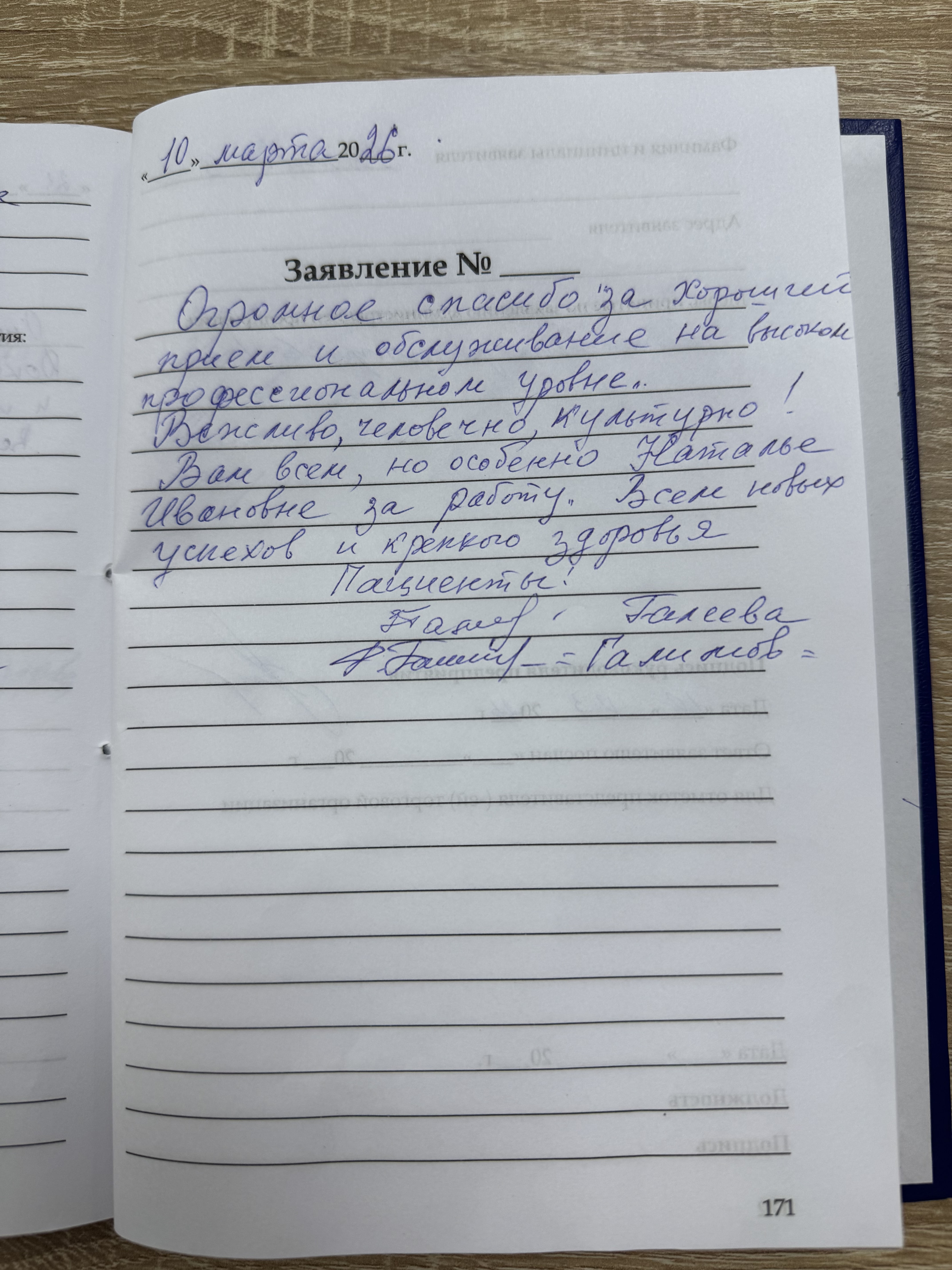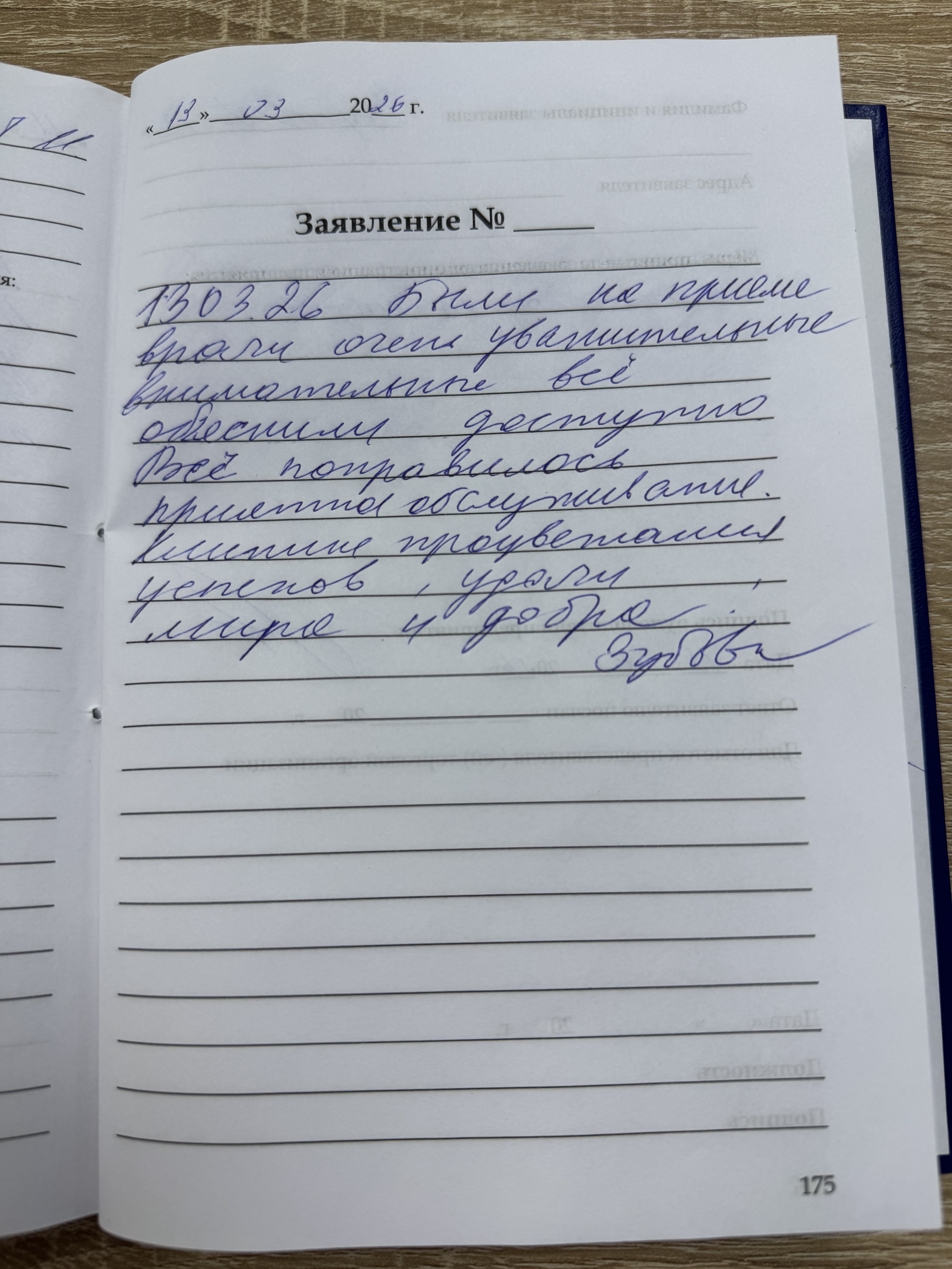 13.03.2026 Были на приеме.Врачи очень уважительные, внимательные, все объяснили доступно. Все понравилось, приятное обслуживание. Клинике процветания, успехов, удачи, мира и добра! Зубов
