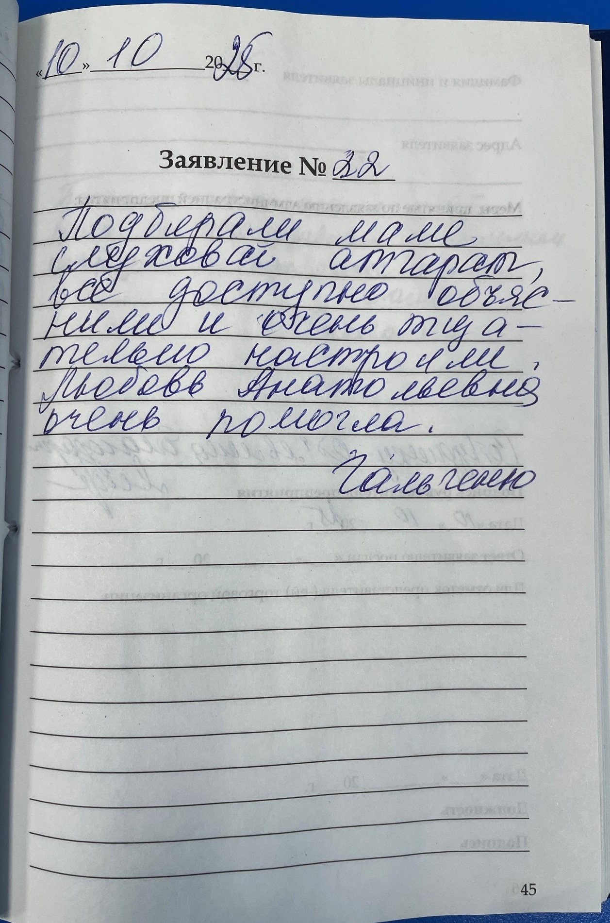 Любовь подбирала папе аппараты по электронному сертификату. Были приятно удивлены отношением к пациентам, сейчас редко встретишь такое. Благодарим.