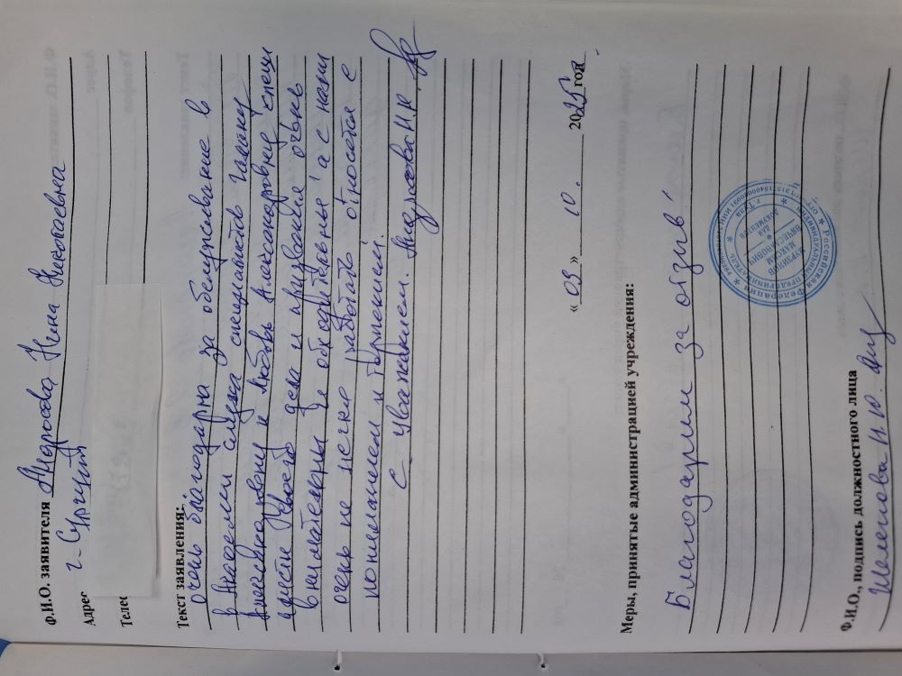Благодарю за всё. Все девочки в центре добрые и отзывчивые. Прихожу к ним, всегда помогают.