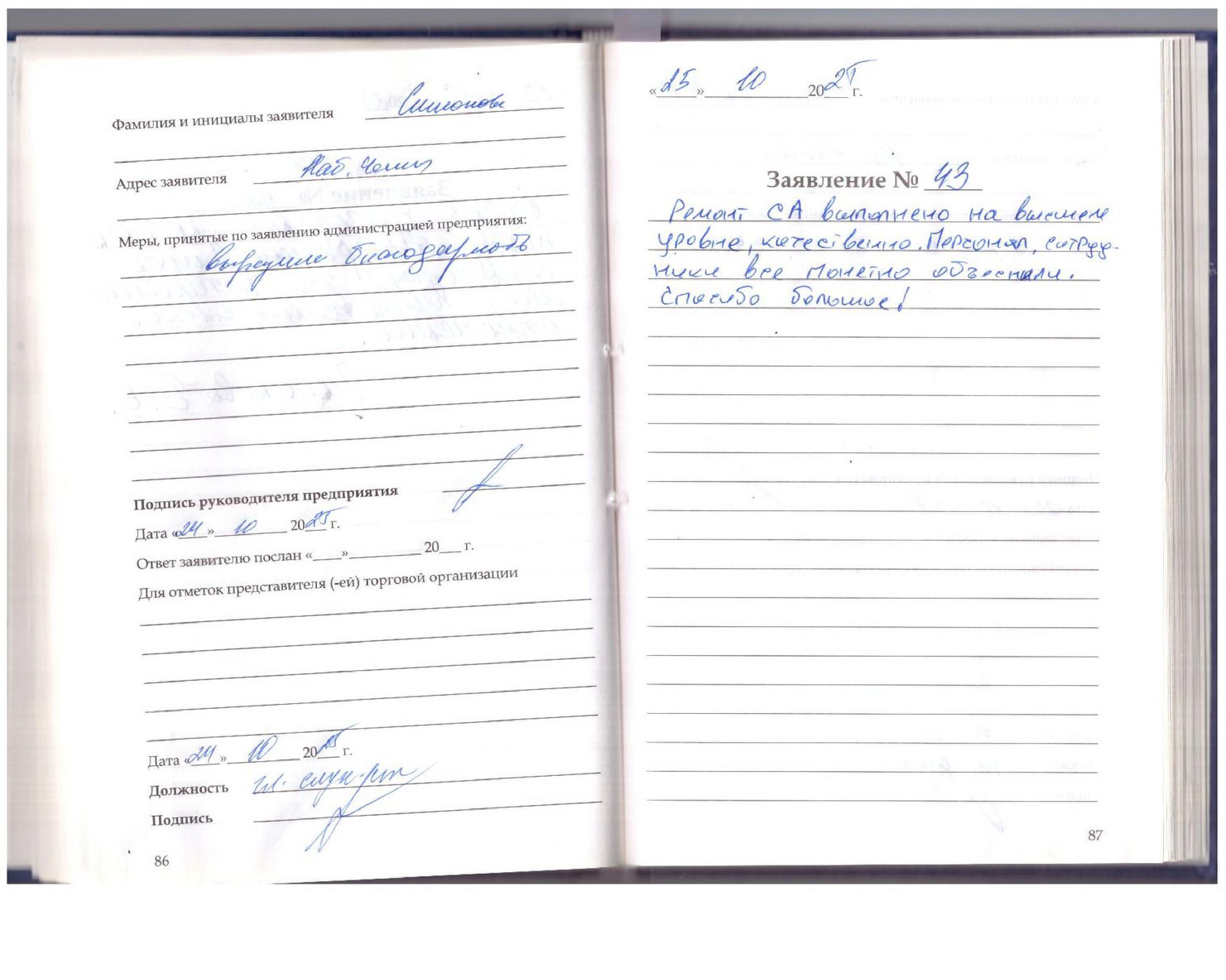 Ремонт СА выполнено на высшем уровне, качественно.Персонал, сотрудники все понятно объяснили .