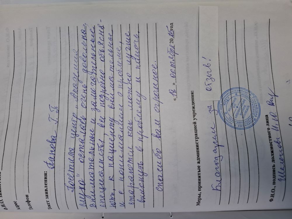 От всего сердца огромная благодарность за внимание всем сотрудникам центра. Всех благ земных. Побольше таких отзывчивых людей хочется встречать чаще . С уважением. Спасибо.