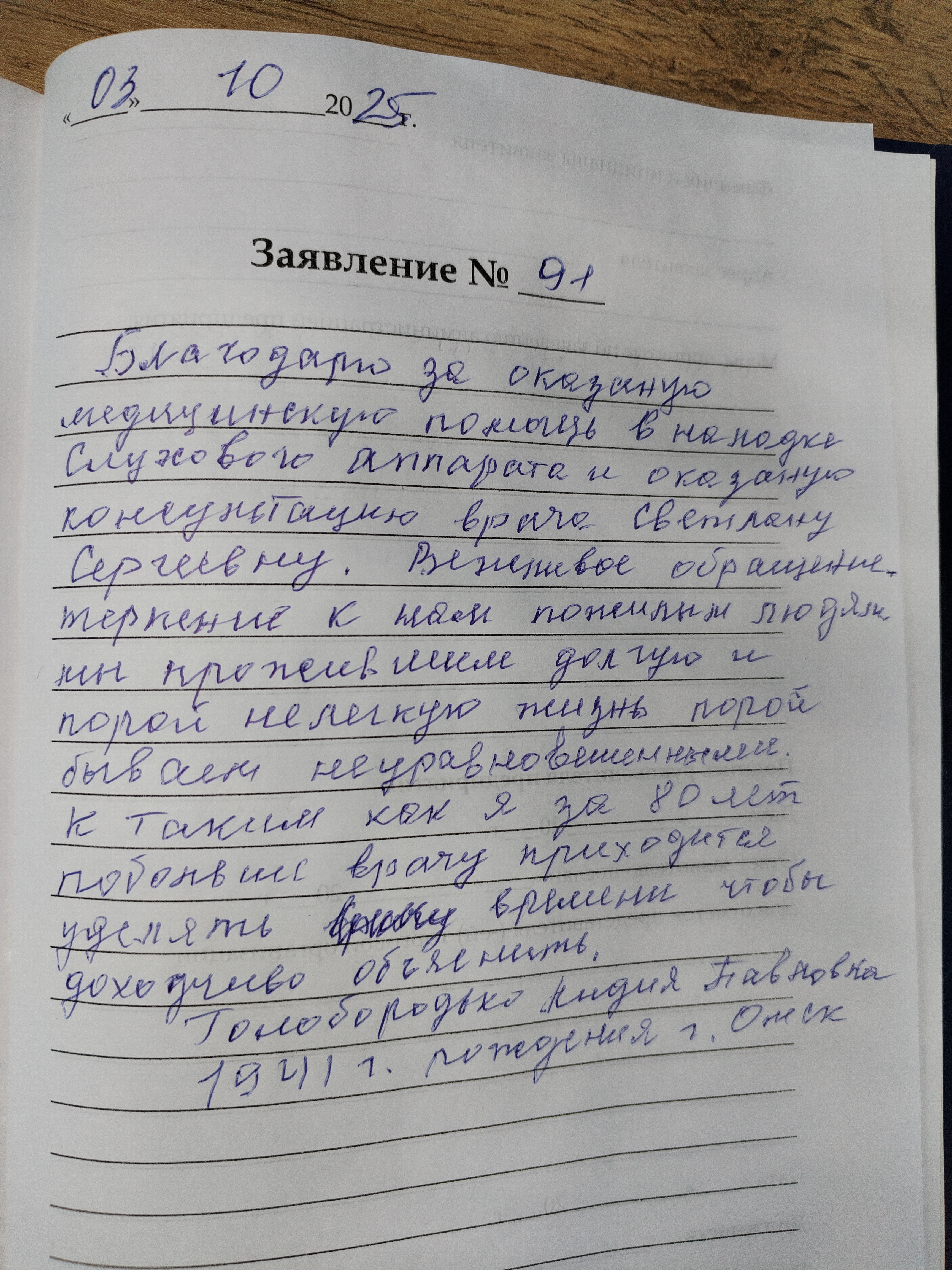 Благодарю за оказанную медицинскую помощь в наладке слухового аппарата и оказанную консультацию врача Светлану Сергеевну. Вежливое обращение, терпение к нам пожилым людям. Мы прожившие долгую и порой нелегкую жизнь порой бываем неуравновешенными. К таким как я за 80 лет побольше врачу приходится уделять времени чтобы доходчиво объяснить.