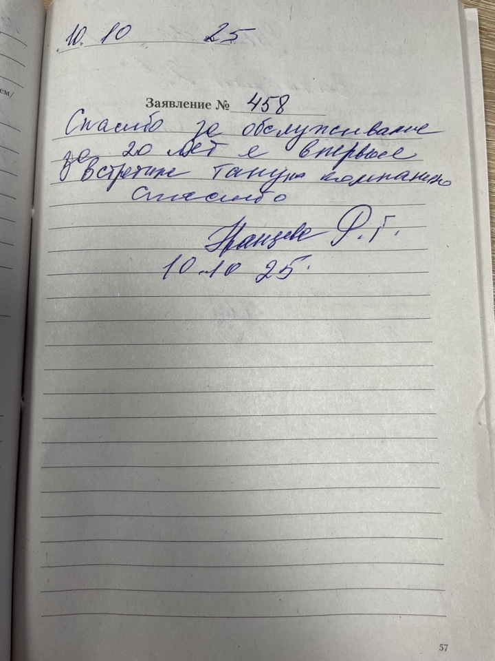 Спасибо за обслуживание за 20лет я впервые встретила такую компанию спасибо