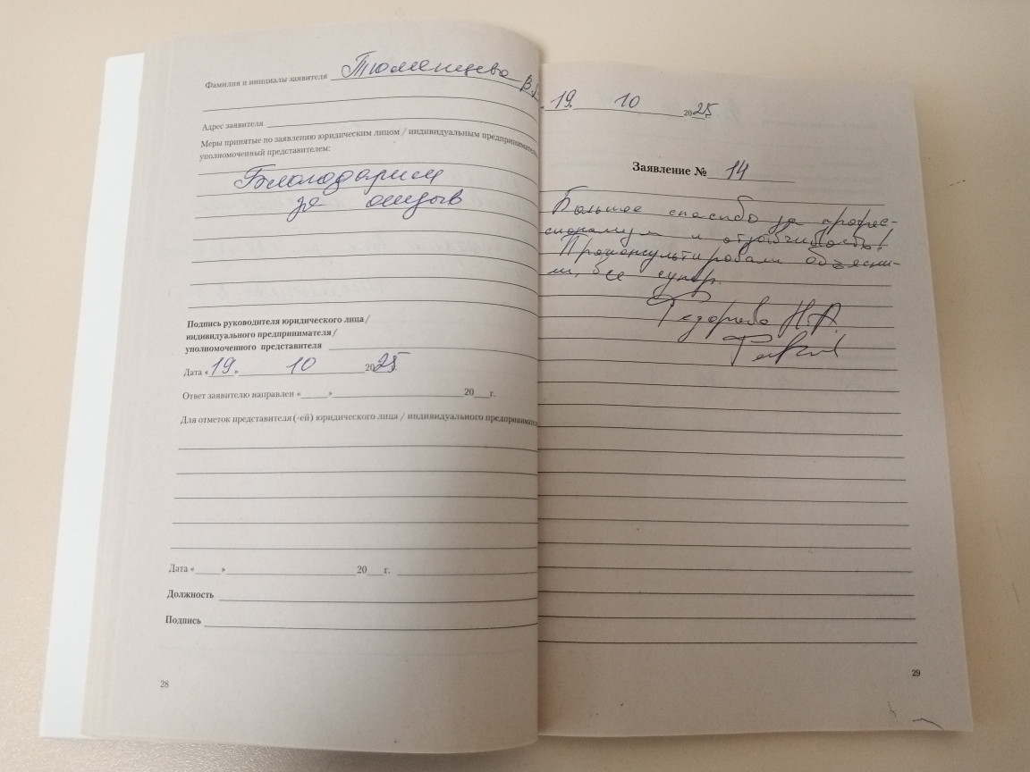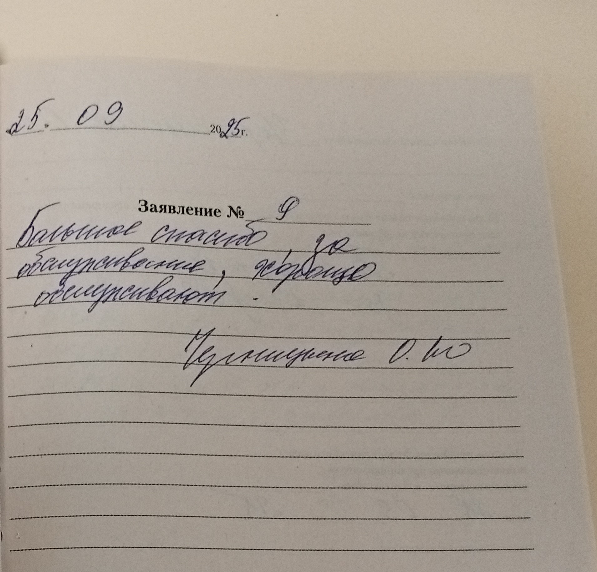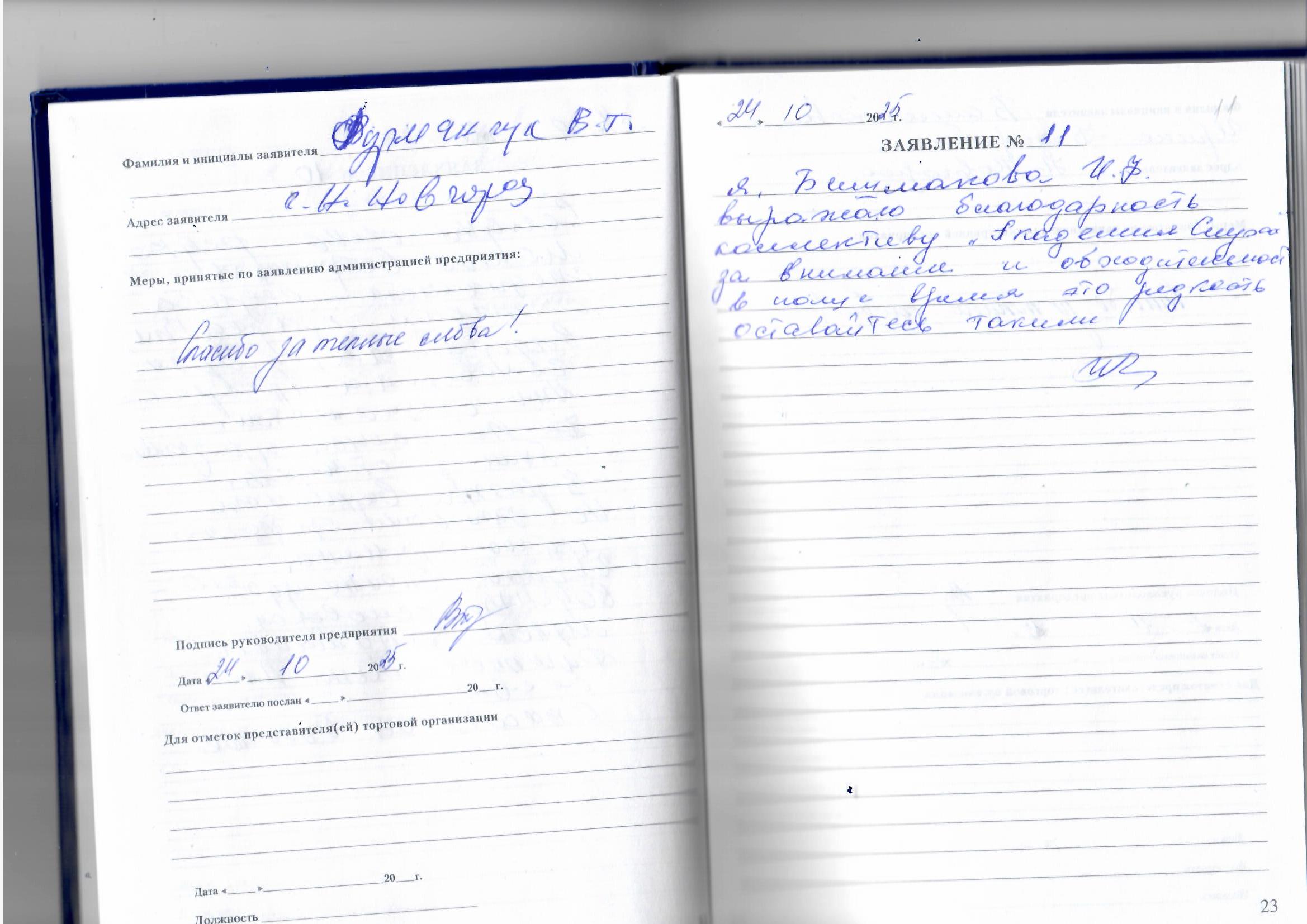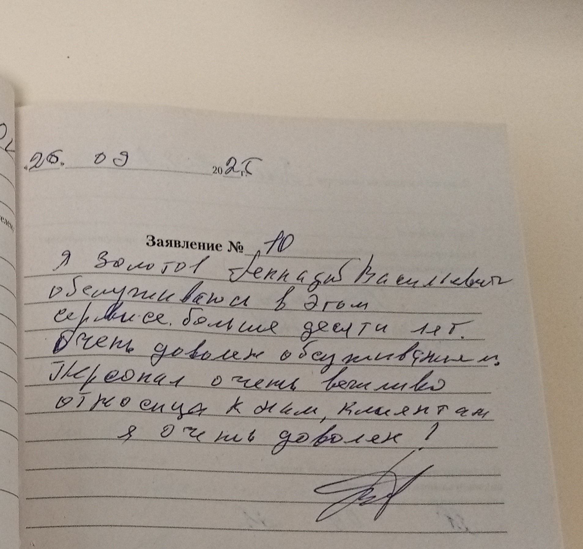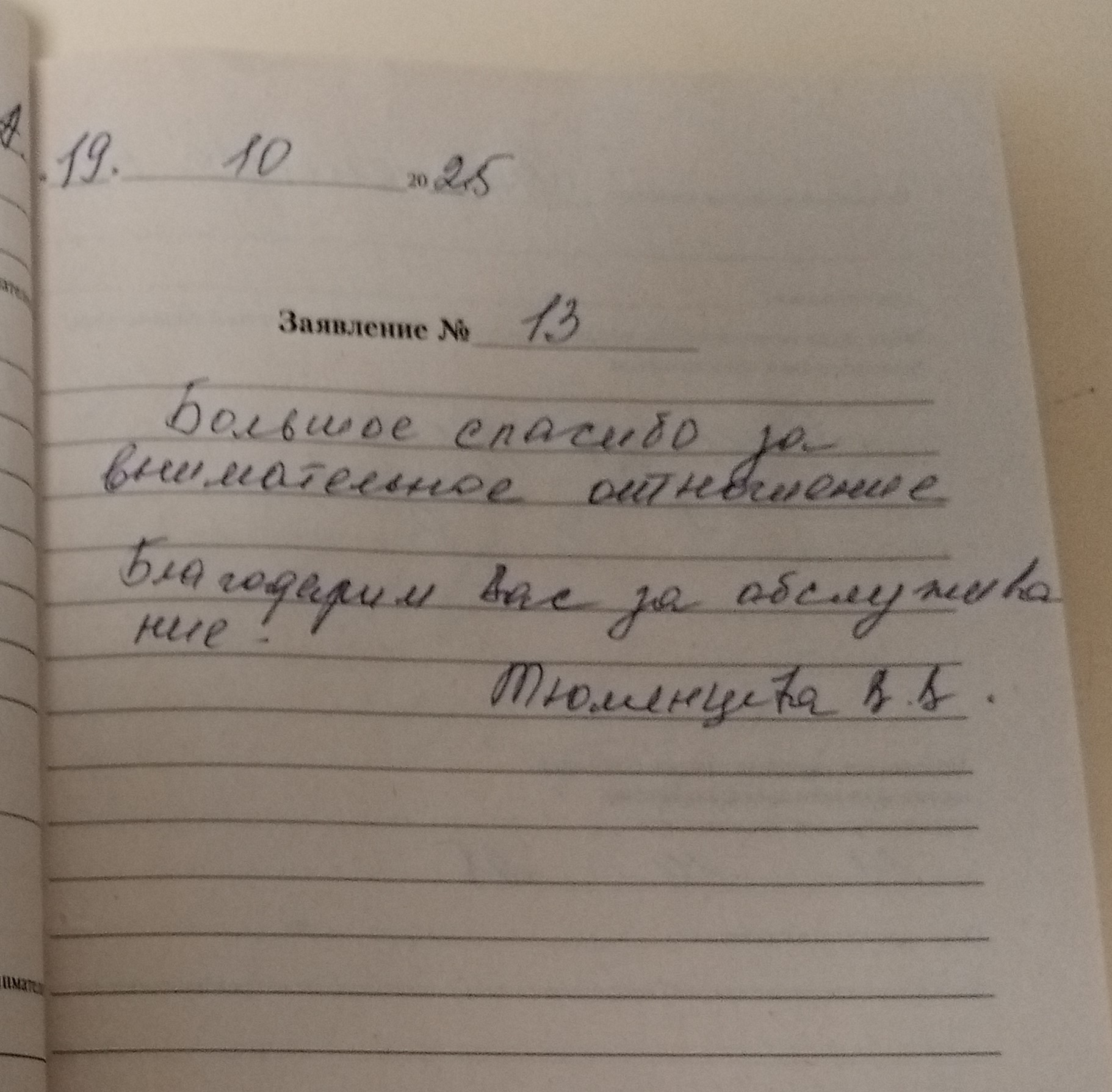 Большое спасибо за внимательное отношение. Благодарим Вас за обслуживание. Тюменцева В.В.
