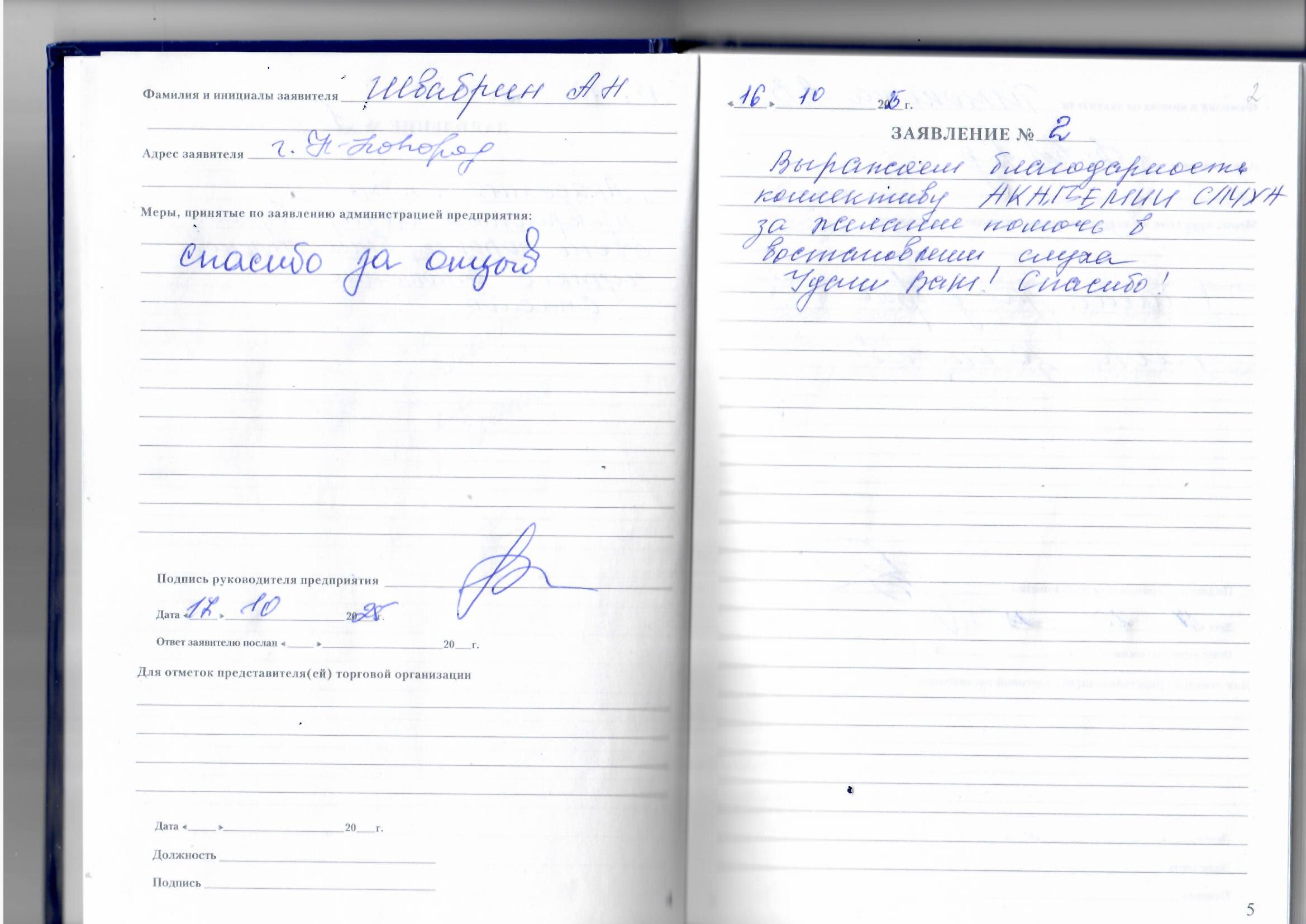 Выражаем благодарность коллективу АКАДЕМИИ СЛУХА за желание помочь в восстановлении слуха. Удачи Вам! Спасибо!