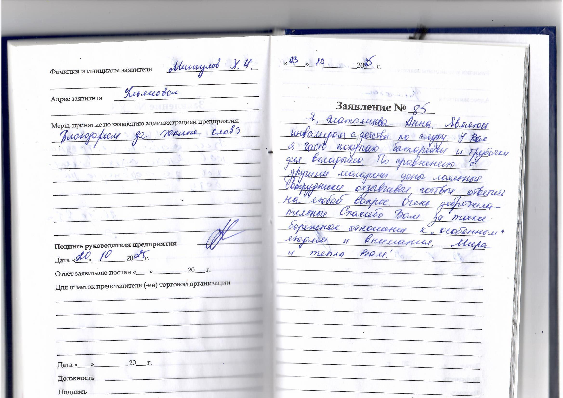 Я, Элатомцева Анна, являюсь инвалидом с детства по слуху. У Вас я часто покупаю батарейки и трубочки для вкладыша. По сравнению с другими магазинами цены лояльные. Сотрудники отзывчивые, готовые ответить на любой вопрос. Очень доброжелательные. Спасибо Вам за такое бережное отношение к "особенным" людям и внимания. Мира и тепла Вам!