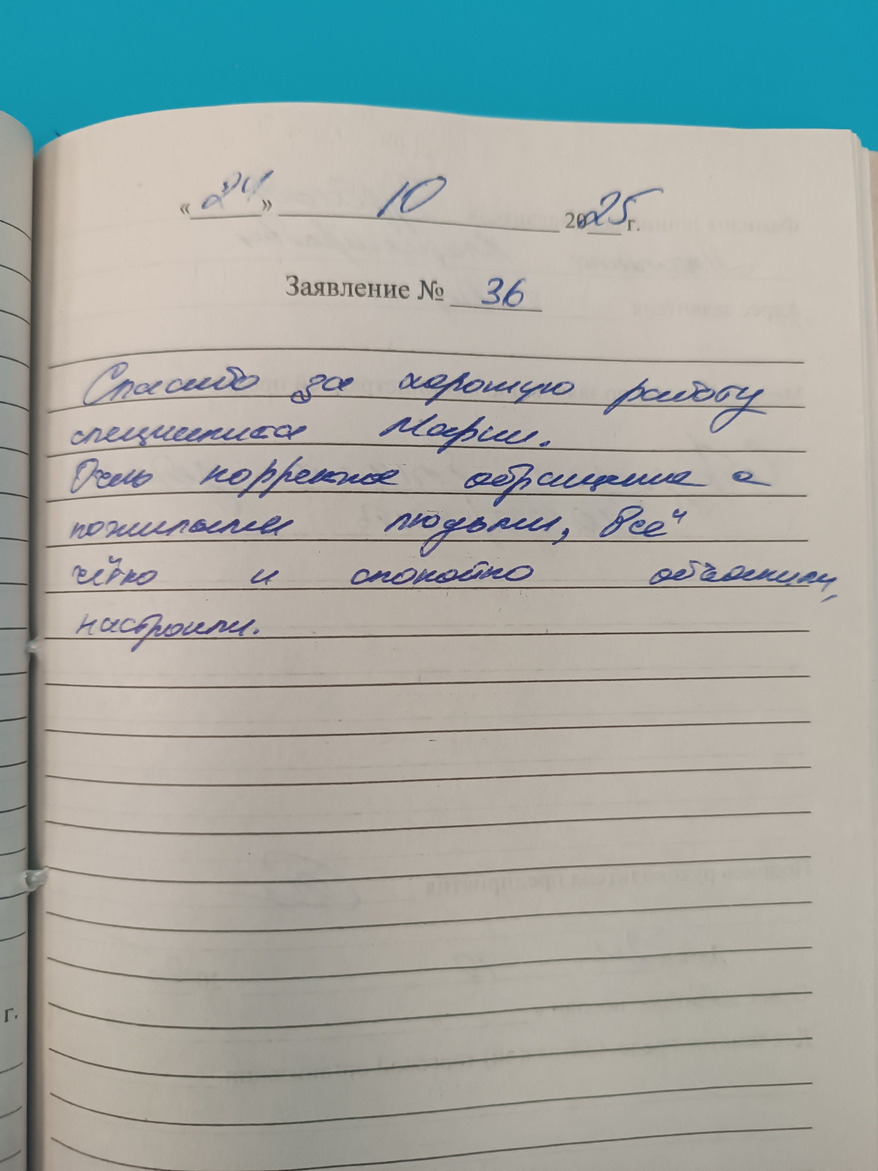 Спасибо за хорошую работу специалисту Марии. Очень корректное обращение с пожилыми людьми, всё чётко и спокойно объяснили, настроили.
