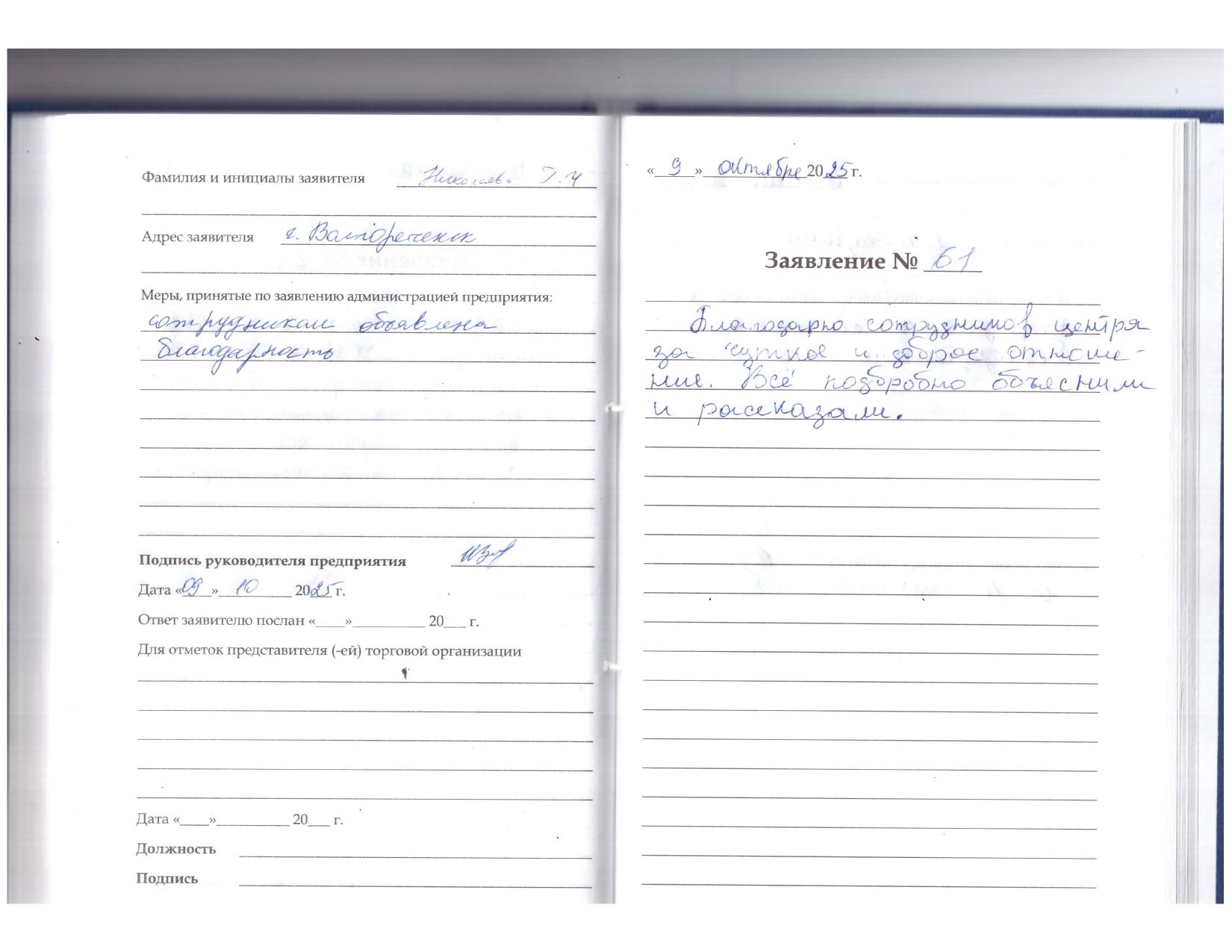 Большое спасибо что ещё есть такие места. Получили всё сразу, очень благодарна очень хорошие сотрудники