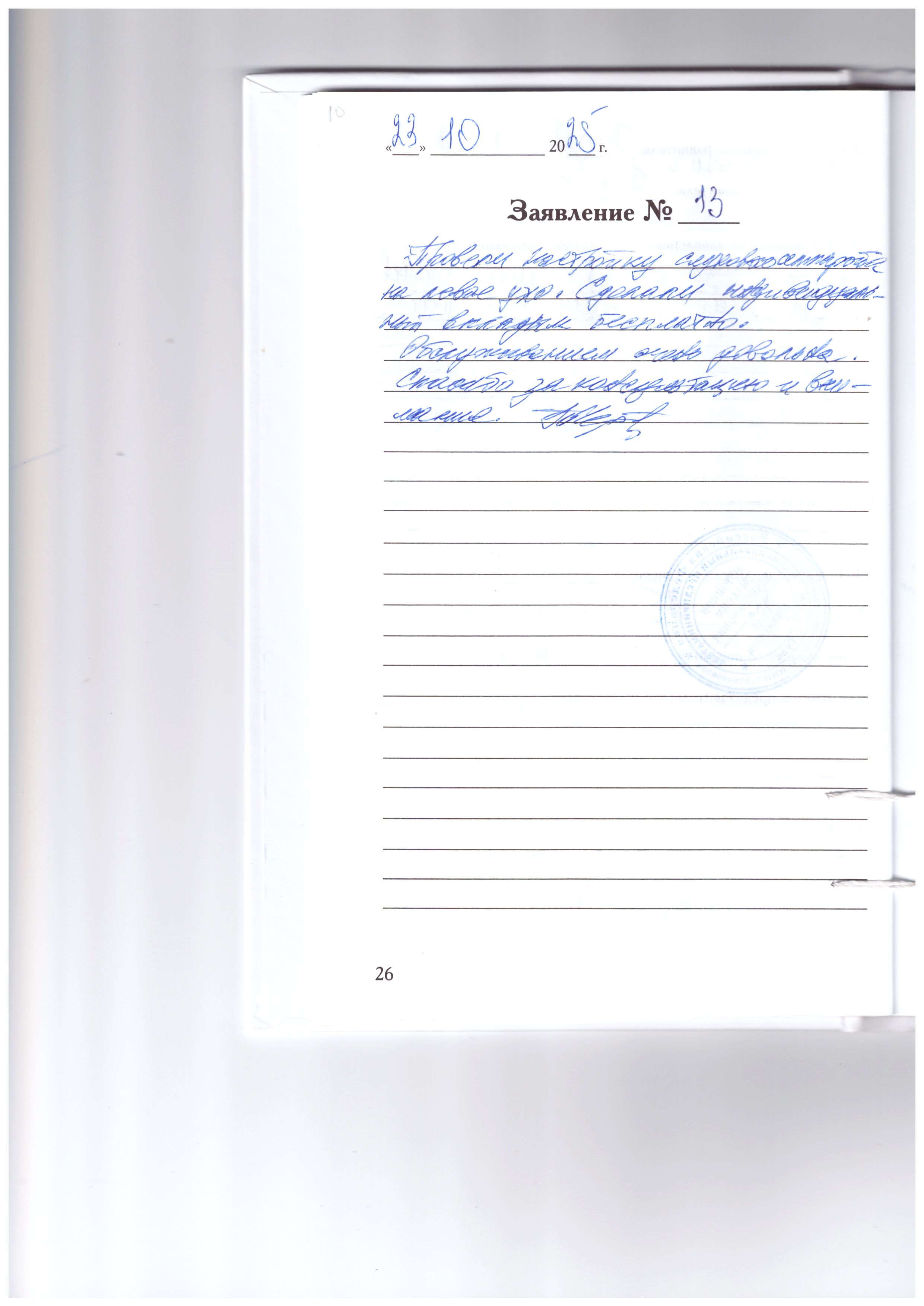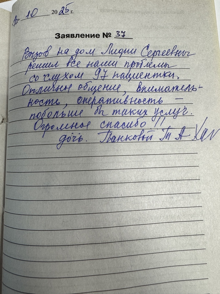 Провели настройку слухового аппарата на левое ухо. Сделали индивидуальный вкладыш бесплатно.Обслуживанием очень довольна. Спасибо за консультацию и внимание.