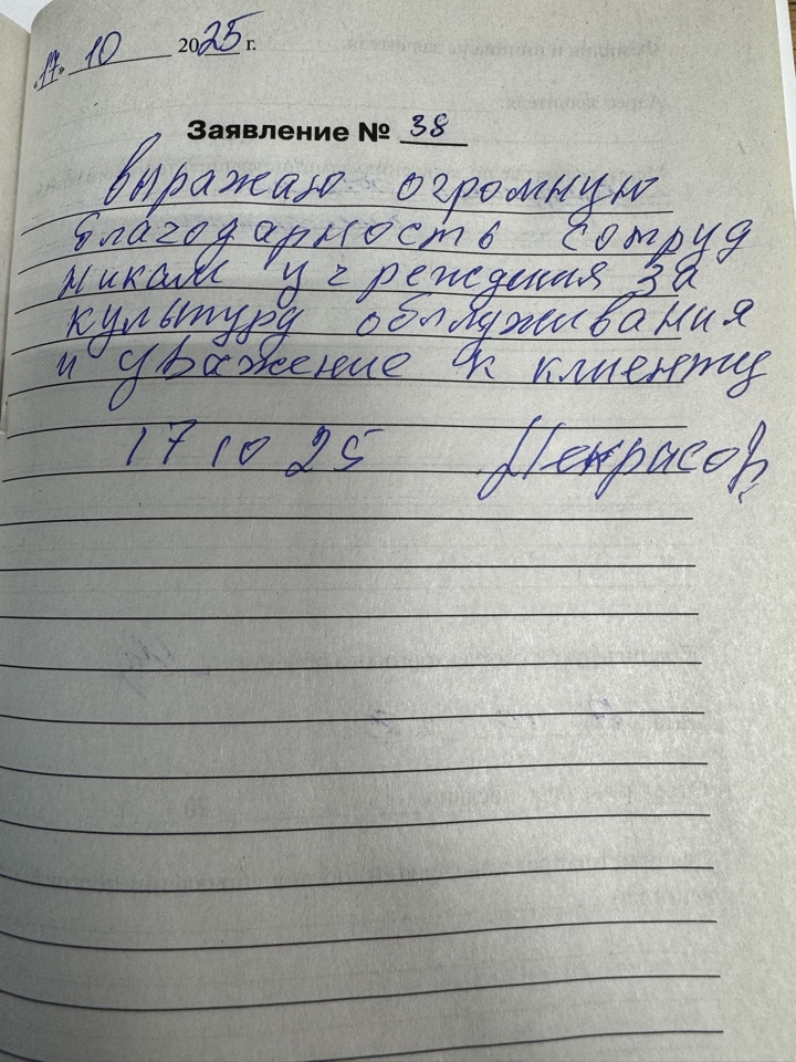 Выражаю огромную благодарность сотрудникам учреждения за культуру обслуживания и уважения к клиенту .