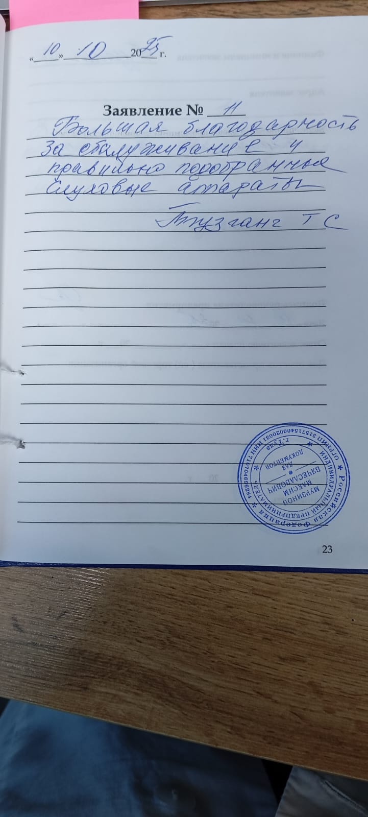 Спасибо за обслуживание, внимание. Все было на высшем уровне!!! Как здорово, когда ты слышишь!!! Спасибо персоналу.