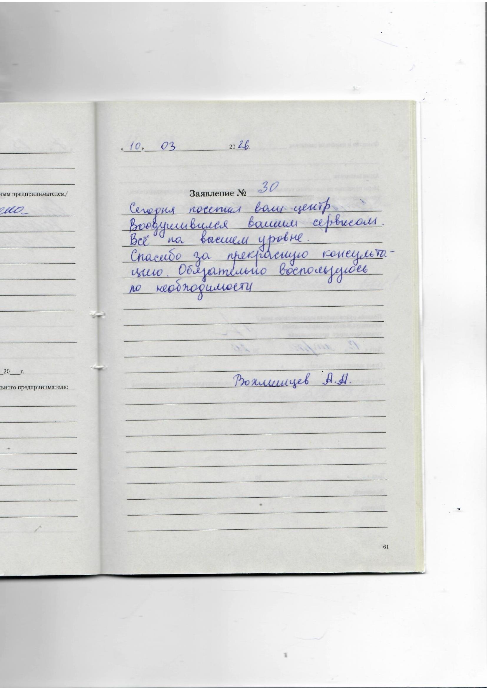 Сегодня посетил ваш центр. Воодушевился вашим сервисом. Все на высшем уровне.
