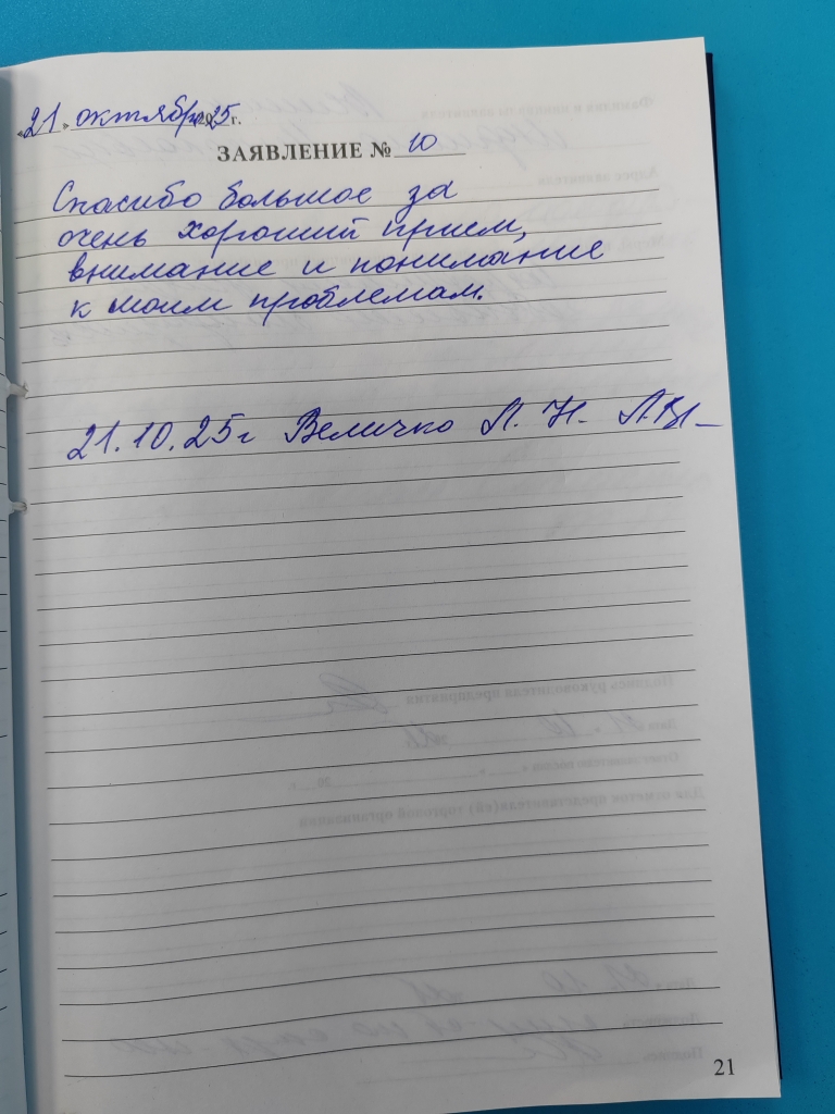 Спасибо большое за очень хороший прием , внимание и понимание к моим проблемам.