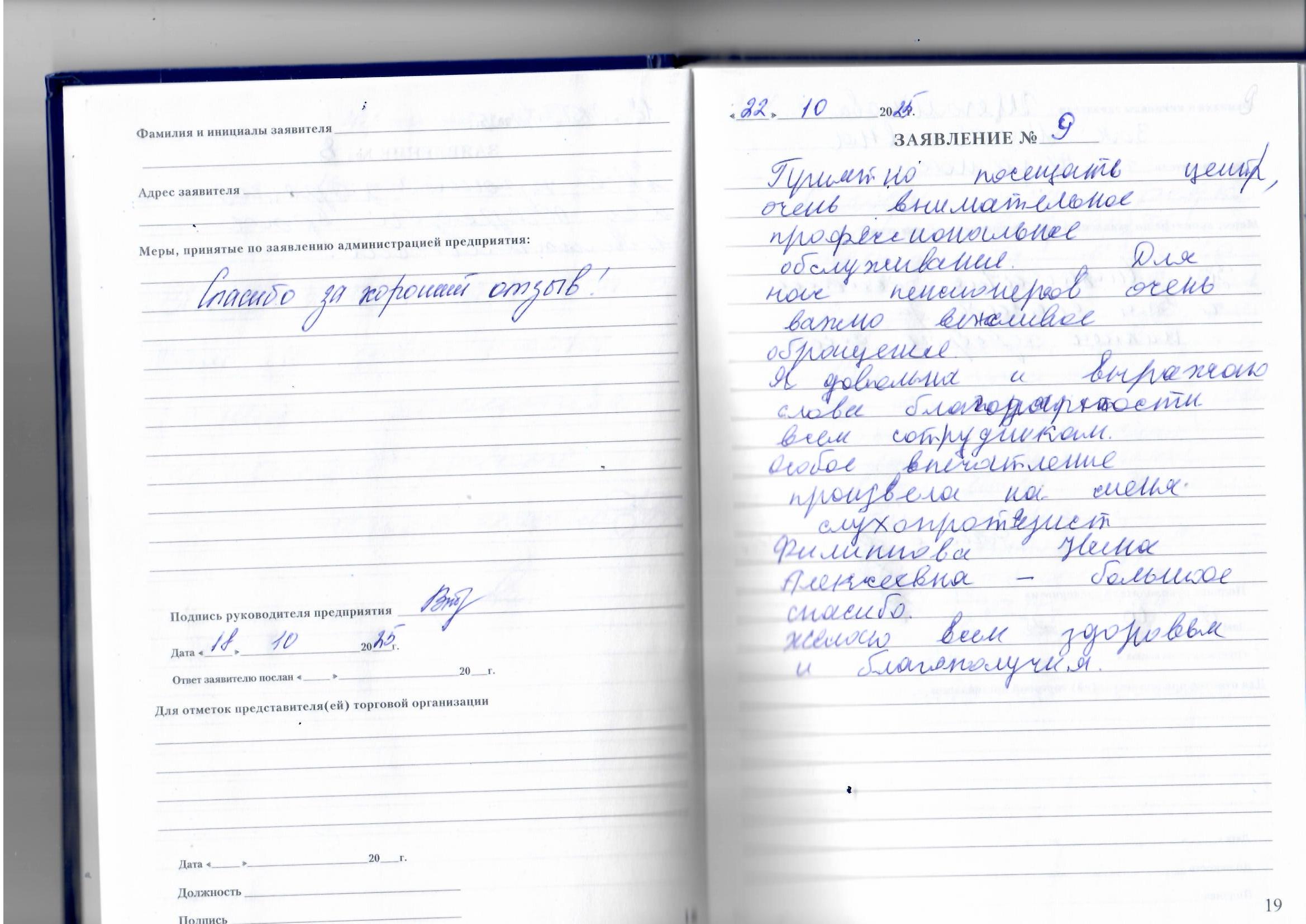 Приятно посещать центр, очень внимательное профессиональное обслуживание. Для нас пенсионеров очень важно вежливое обращение. Я довольна и выражаю слова благодарности всем сотрудника. Особое впечатление произвела на меня Филиппова Нина Алексеевна - большое спасибо. Желаю всем здоровья и благополучия.