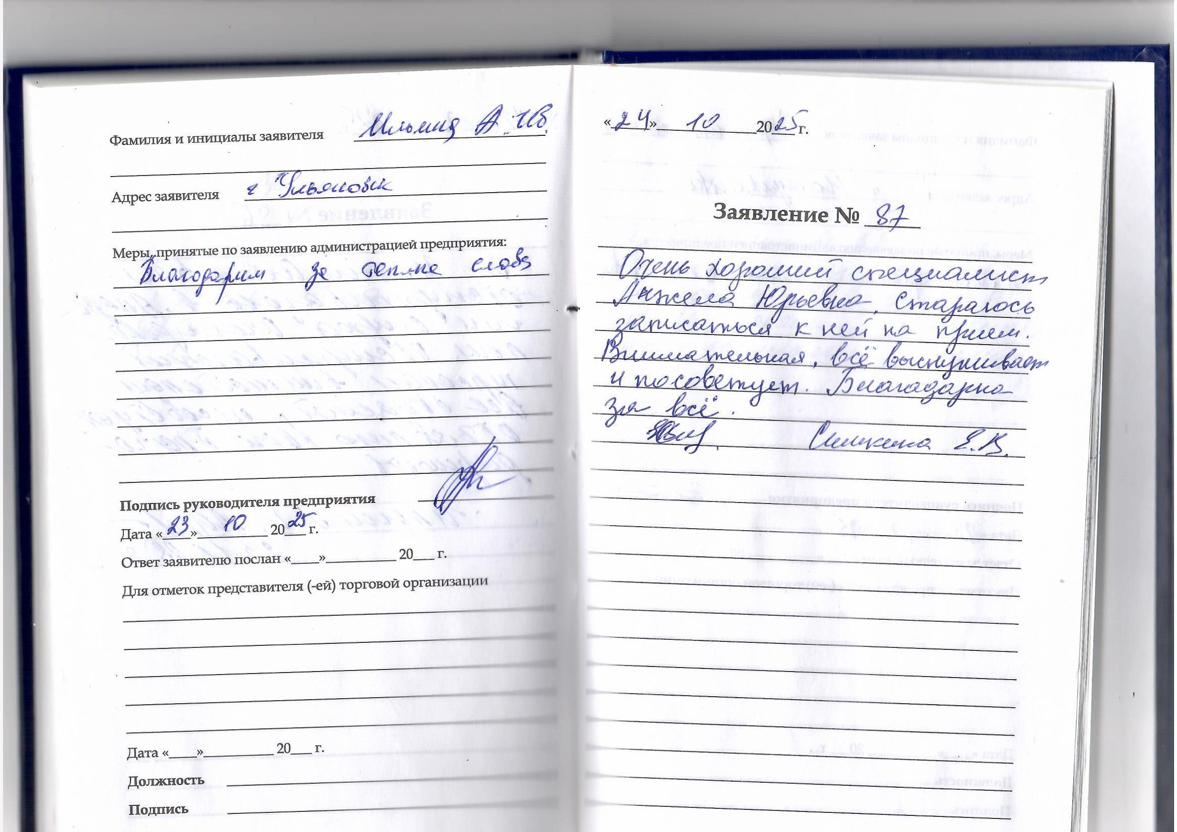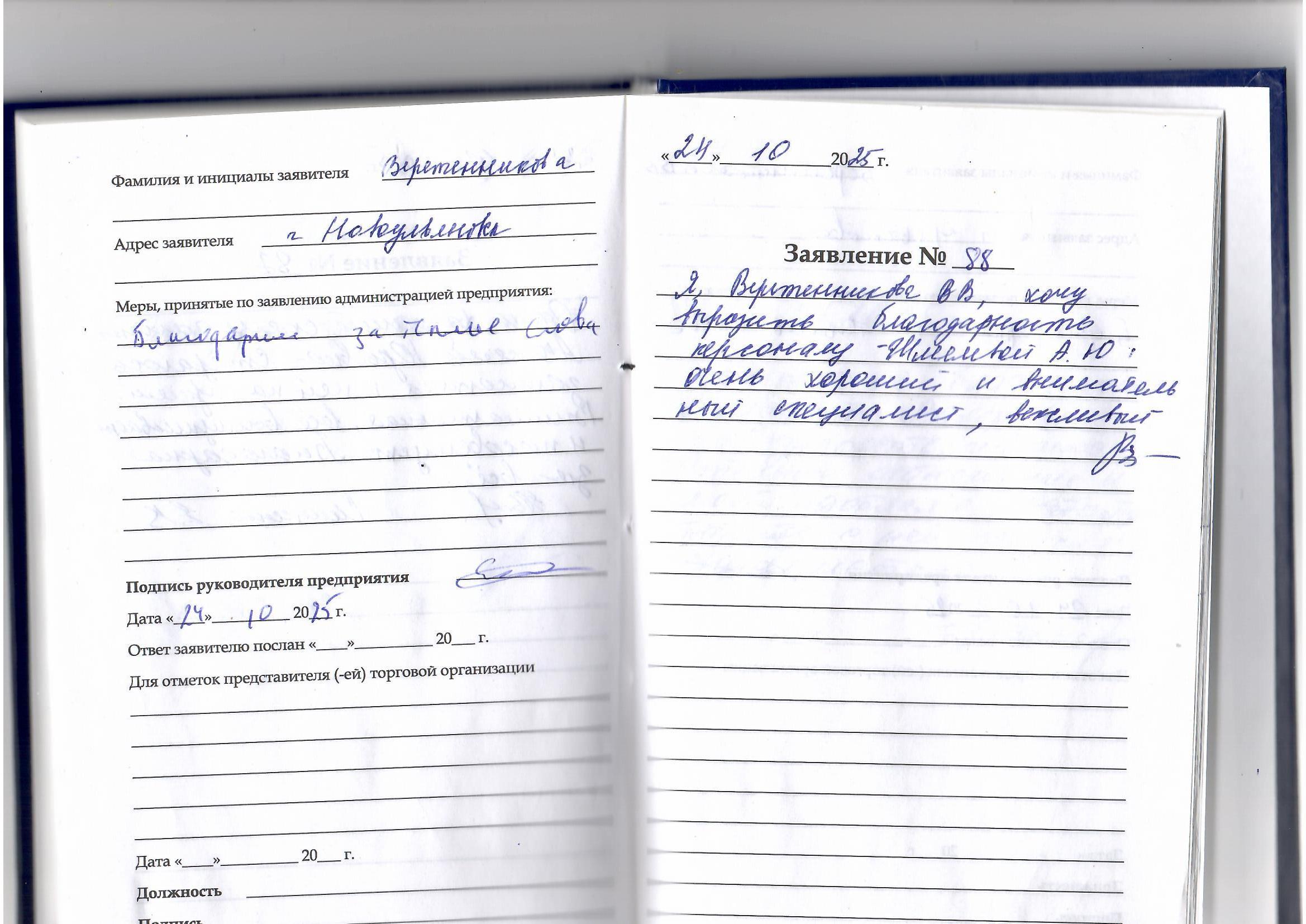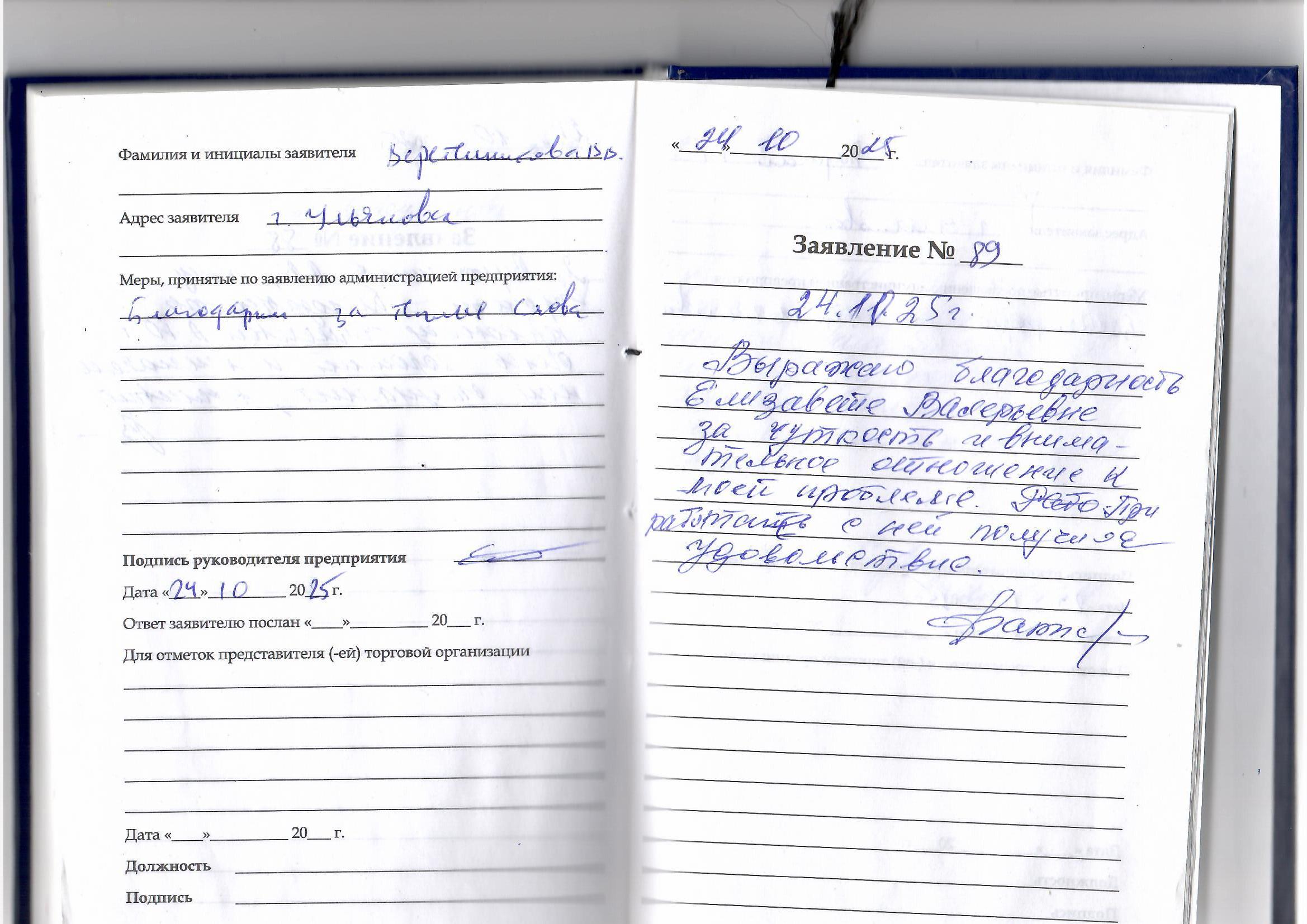 Я, Веретенникова В. В., хочу выразить благодарность персоналу - Шмелевой А. Ю. Очень хороший и внимательный специалист, вежливый.