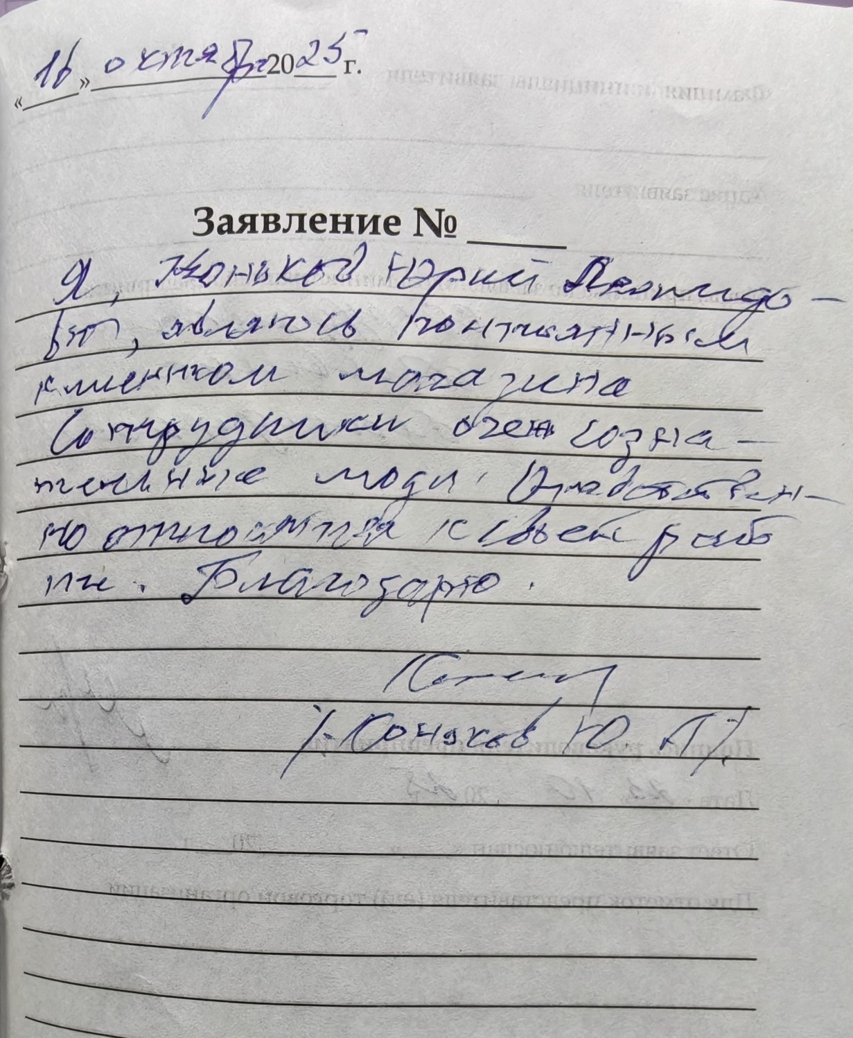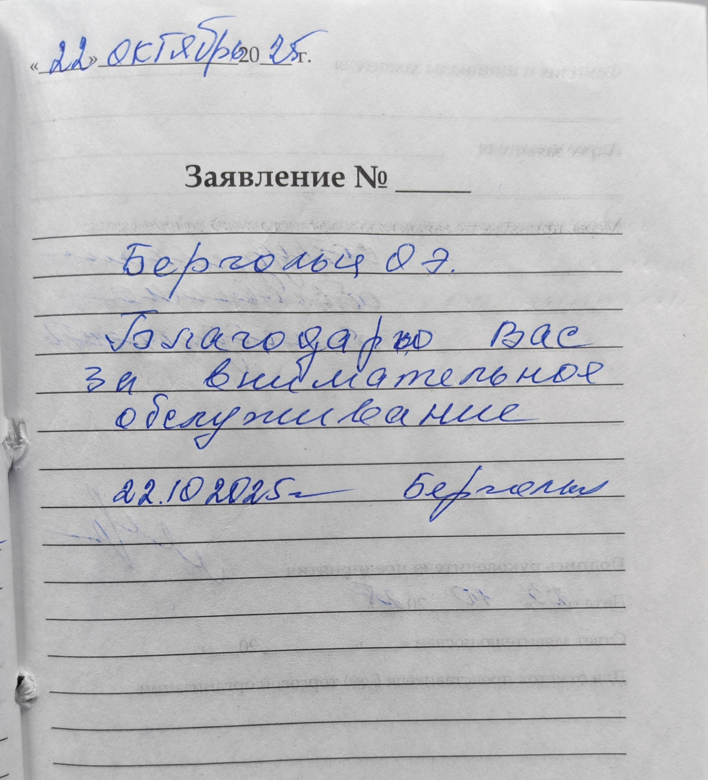 Бергольц О.Э. Благодарю Вас за внимательное обслуживание. 22.10.2025
