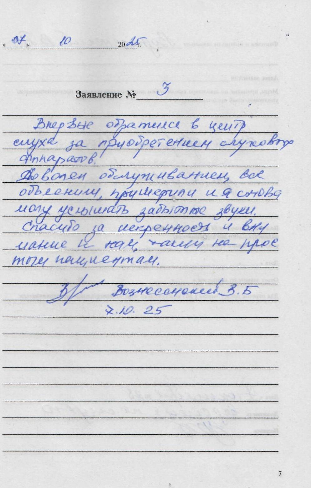 Прошу объявить благодарность за оказание мне медицинского обследования уровень слуха.