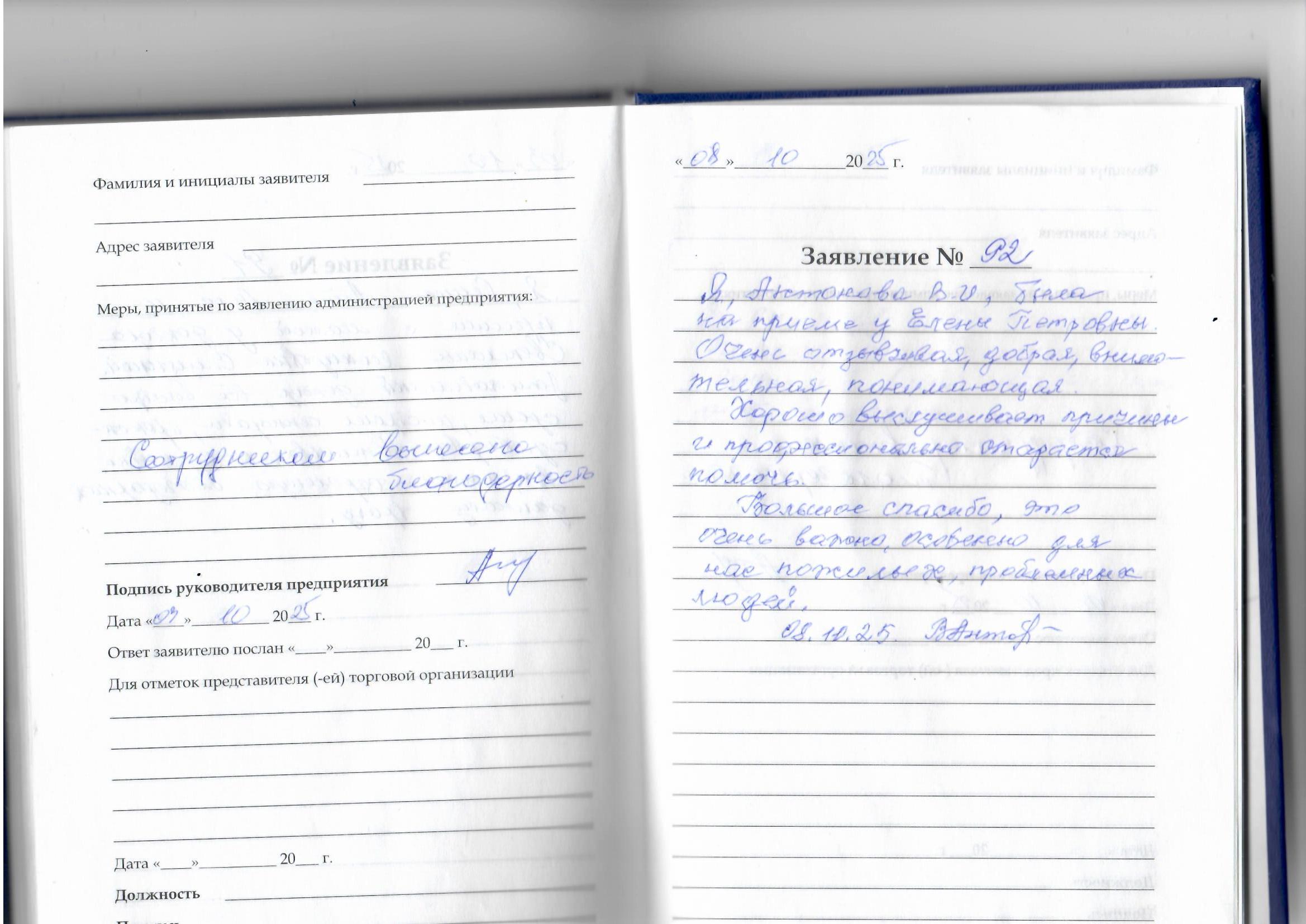 Я. Антонова В.И. была на приеме у Елены Петровны. Очень отзывчивая, добрая ,внимательная ,понимающая.